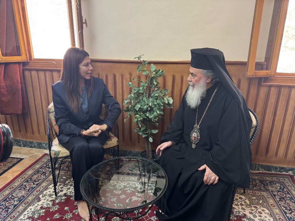 Ὁ Μακαριώτατος εἶχε ἐπίσης συνάντησιν μετά τῆς ἐξοχωτάτης κ. Sherif Fathy, Ὑπουργοῦ Τουρισμοῦ καί Ἀρχαιοτήτων τῆς Ἀραβικῆς Δημοκρατίας τῆς Αἰγύπτου, μετά τῆς ἐξοχωτάτης Πρέσβεως Δρ. Yasmin Moussa, Ἐκπροσώπου τοῦ Ὑπουργοῦ Ἐξωτερικῶν τῆς Ἀραβικῆς Δημοκρατίας τῆς Αἰγύπτου, καθώς καί μετά τοῦ ἐκπροσώπου τῶν Η.Π.Α, κ. Michael Rigas διά περαιτέρω διαβουλεύσεις εἰς θέματα ἀφορῶντα ἐκκλησιαστικάς ὑποθέσεις καί τούς ἱερούς τόπους τῆς περιοχῆς.