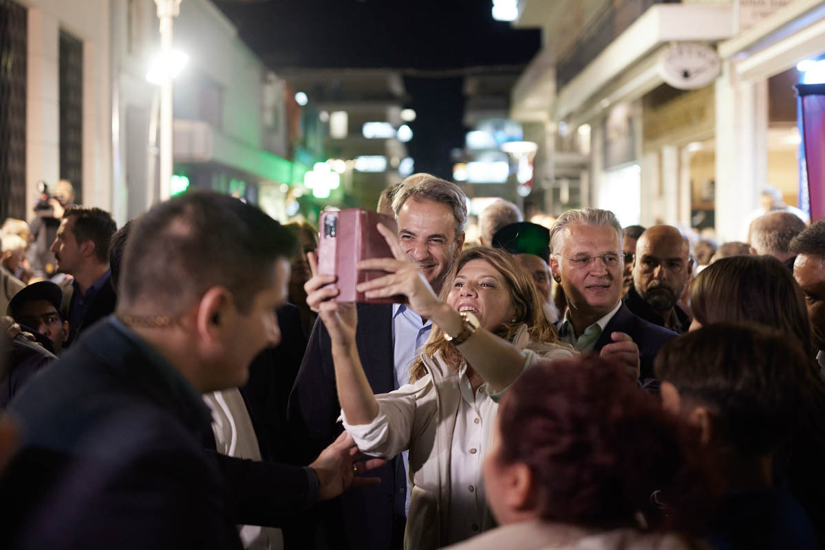 Στη συνέχεια, ο Κυριάκος Μητσοτάκης και ο Δημήτρης Πτωχός περπάτησαν σε κεντρικούς δρόμους της πόλης και συνομίλησαν με πολίτες.