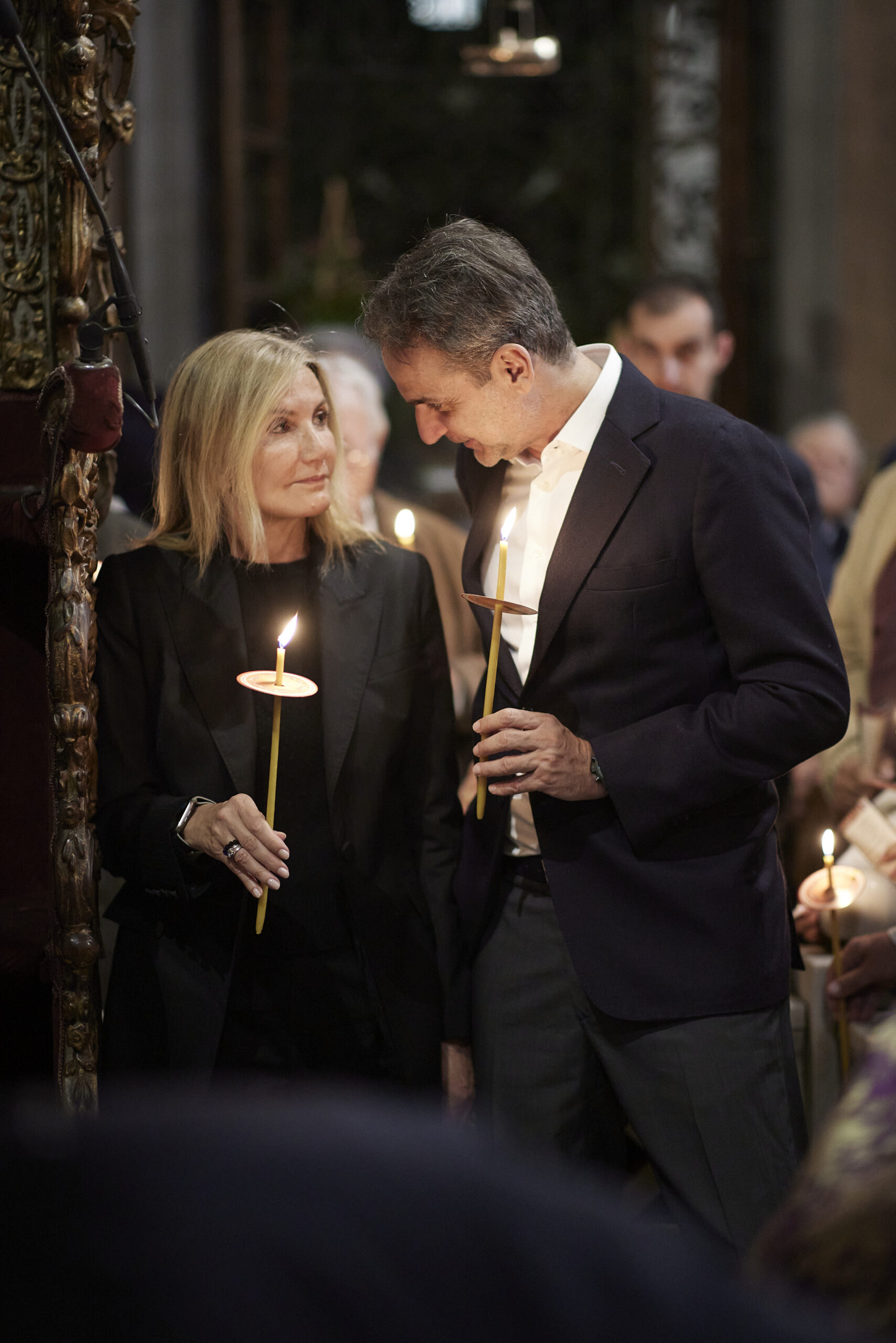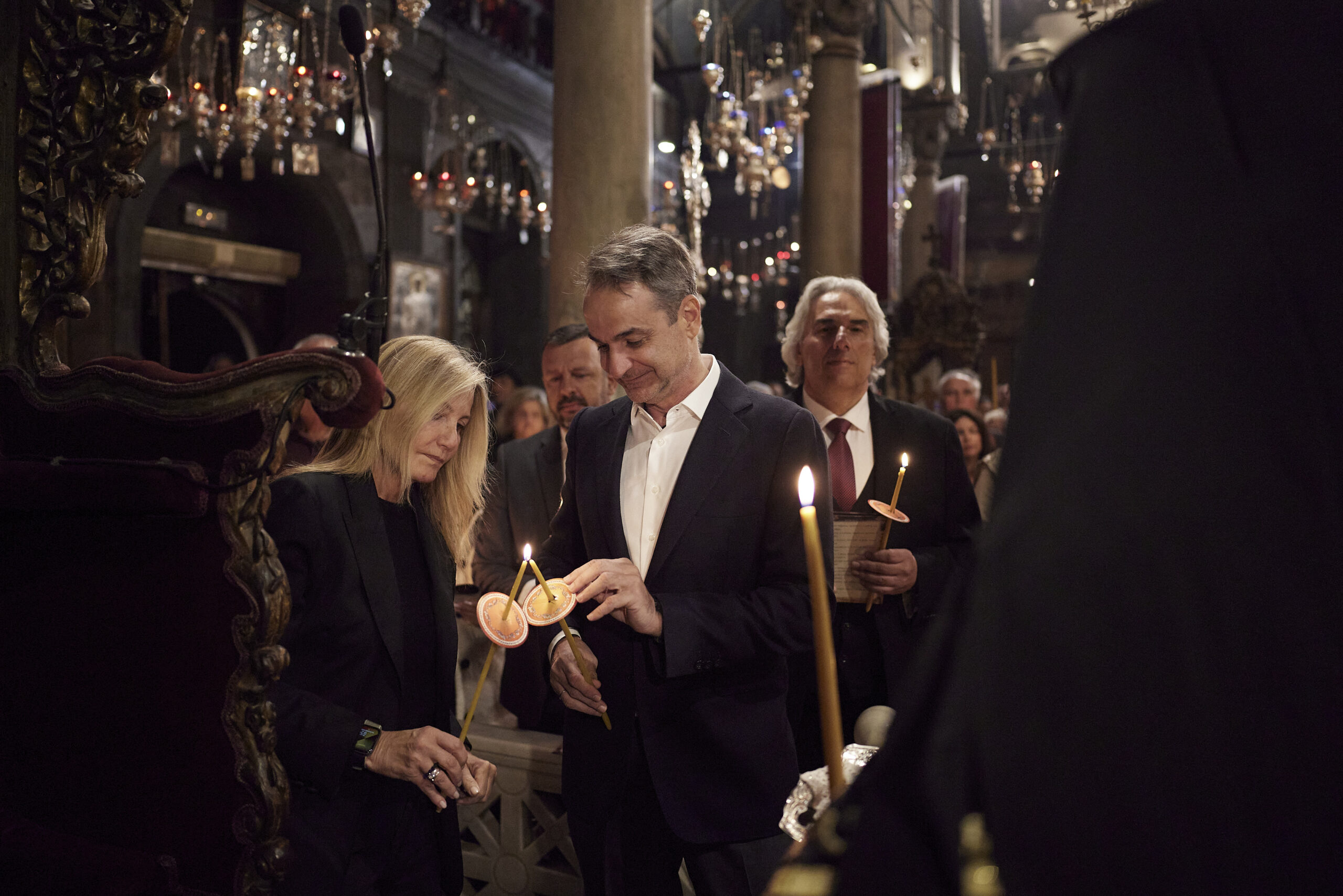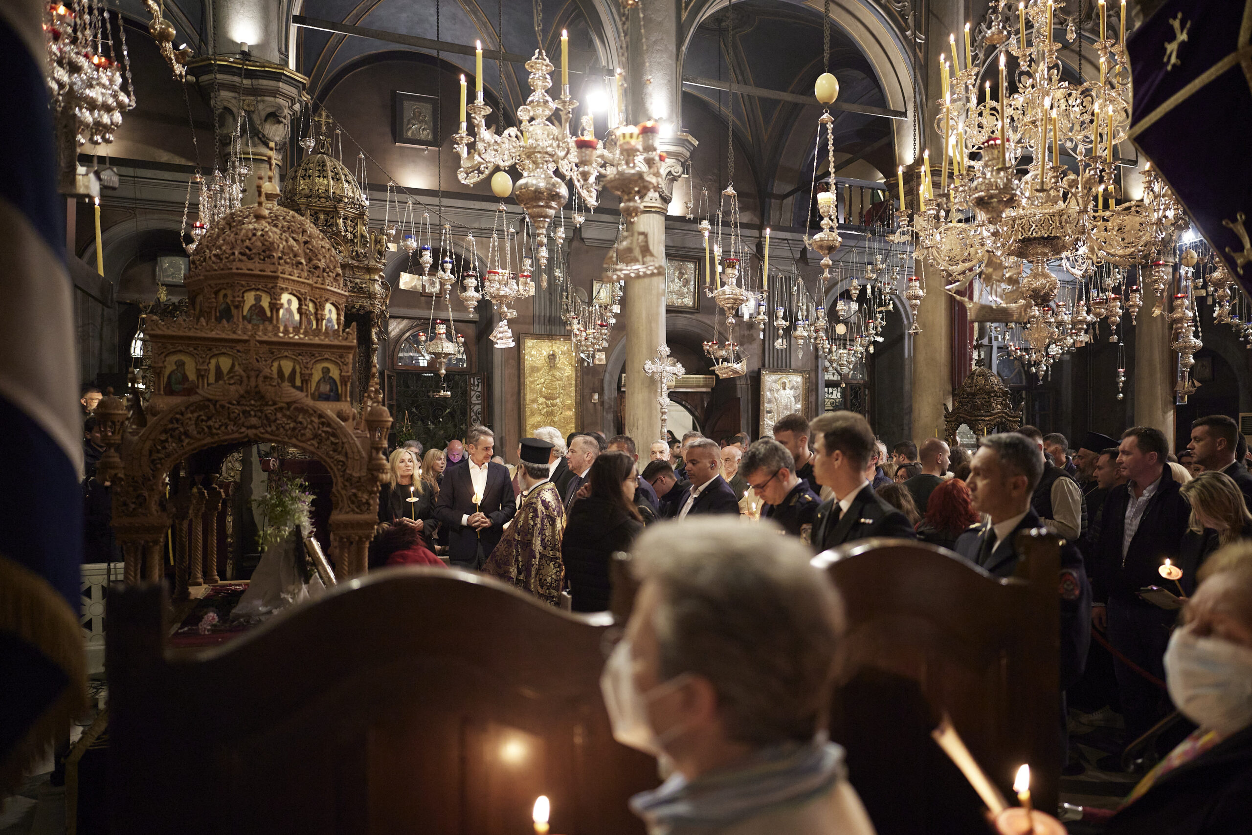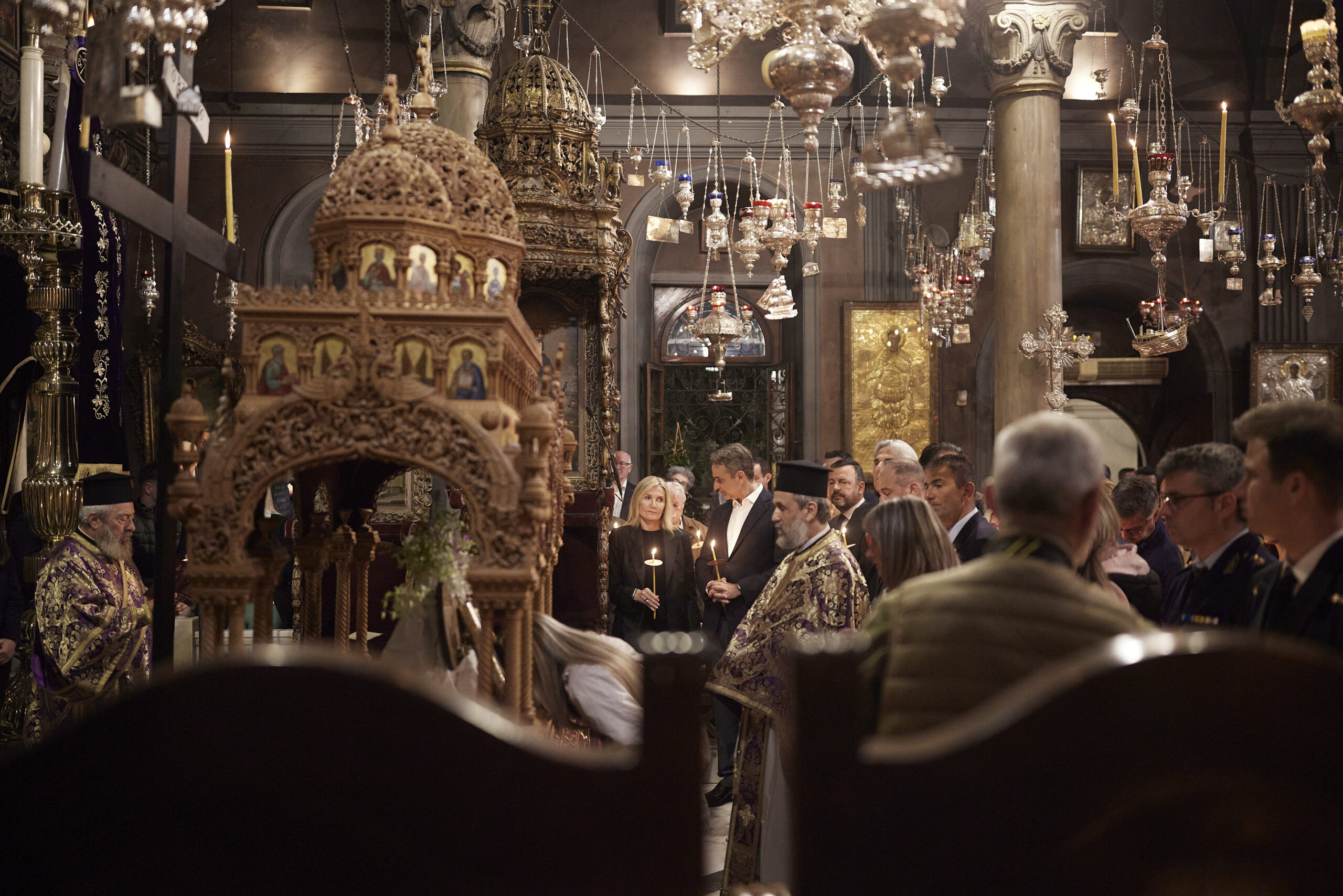 Ο Πρωθυπουργός Κυριάκος Μητσοτάκης, συνοδευόμενος από τη σύζυγό του Μαρέβα Γκραμπόφσκι - Μητσοτάκη , παρακολούθησε την Ακολουθία και Περιφορά του Επιταφίου στον Ιερό Ναό Ευαγγελιστρίας Τήνου.