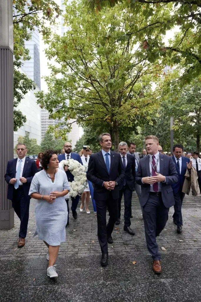 «Αισθάνθηκα την ανάγκη να έρθω σήμερα σε αυτόν τον ιερό τόπο να αφήσω ένα λουλούδι και να καταθέσω στη μνήμη των 2.977 αθώων ανθρώπων που έχασαν τη ζωή τους άδικα στη τρομοκρατική επίθεση της 11ης Σεπτεμβρίου. Ανάμεσά τους ήταν και 41 Ελληνοαμερικανοί, ένας από τους οποίους ήτανε και ο Γιάννης ο οποίος βρέθηκε εγκλωβισμένος στο 104ο όροφο όταν χτύπησε το πρώτο αεροπλάνο τον βόρειο πύργο» δήλωσε ο Κυριάκος Μητσοτάκης.