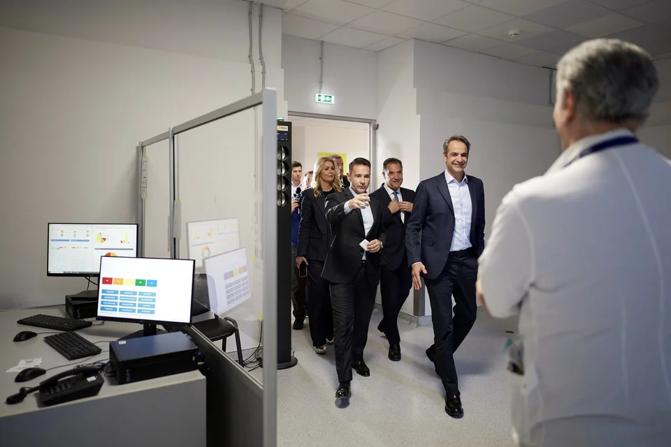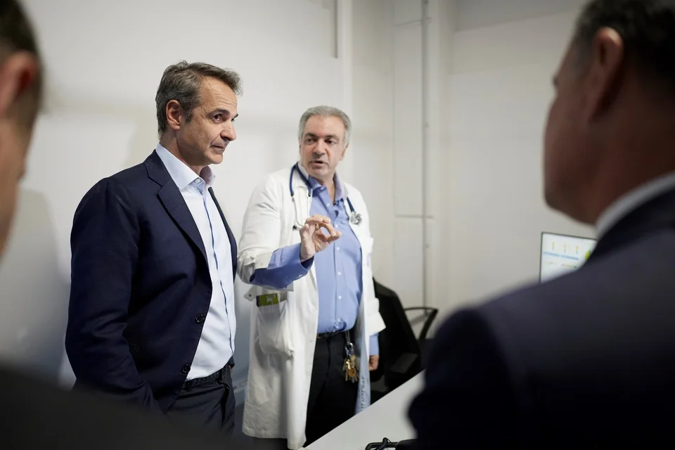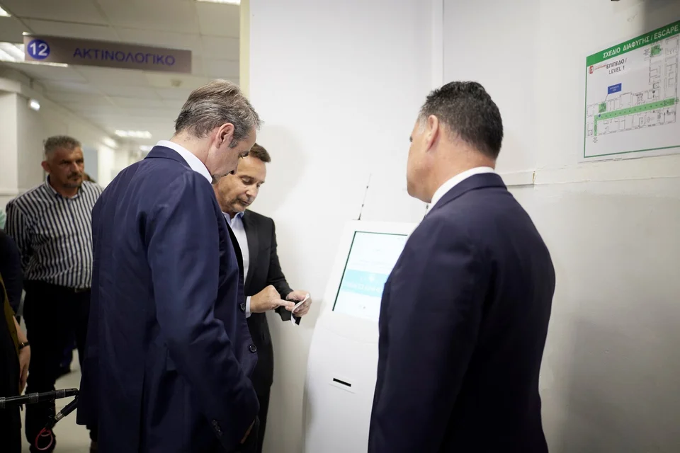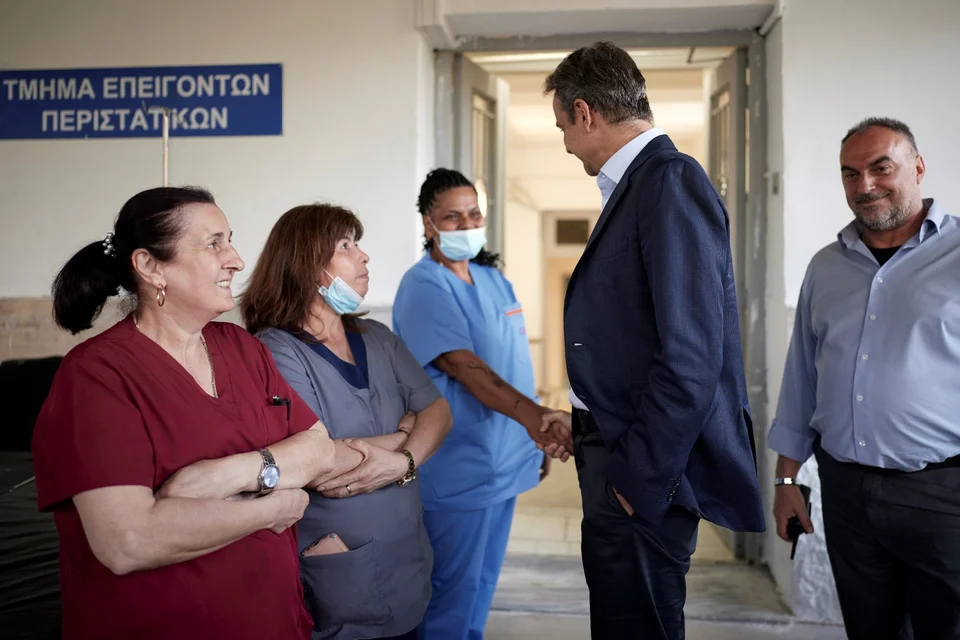 Αμέσως μετά την επίσκεψή του στο υπουργείο Υγείας, ο πρωθυπουργός, συνοδευόμενος από τον υπουργό Υγείας Άδωνι Γεωργιάδη, μετέβη στο δημόσιο νοσοκομείο, όπου είχε την ευκαιρία να ενημερωθεί από τον διοικητή του, Τάσο Γρηγορόπουλο, για την εφαρμογή της πιλοτικής δράσης ιχνηλάτησης περιστατικών στο ΤΕΠ, που τέθηκε σε λειτουργία την προηγούμενη εβδομάδα.
