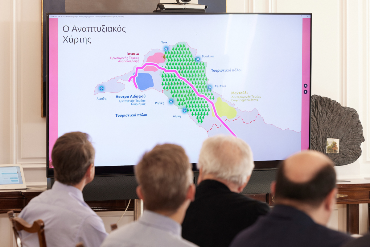 Το στρατηγικό σχέδιο παρουσίασε στον πρωθυπουργό, στους εκπροσώπους της τοπικής αυτοδιοίκησης και στα μέλη της υποεπιτροπής «Εύβοια Μετά», η οποία αναλαμβάνει την παρακολούθηση της πορείας του προγράμματος, ο επικεφαλής της επιτροπής ανασυγκρότησης της βόρειας Εύβοιας, Σταύρος Μπένος.
