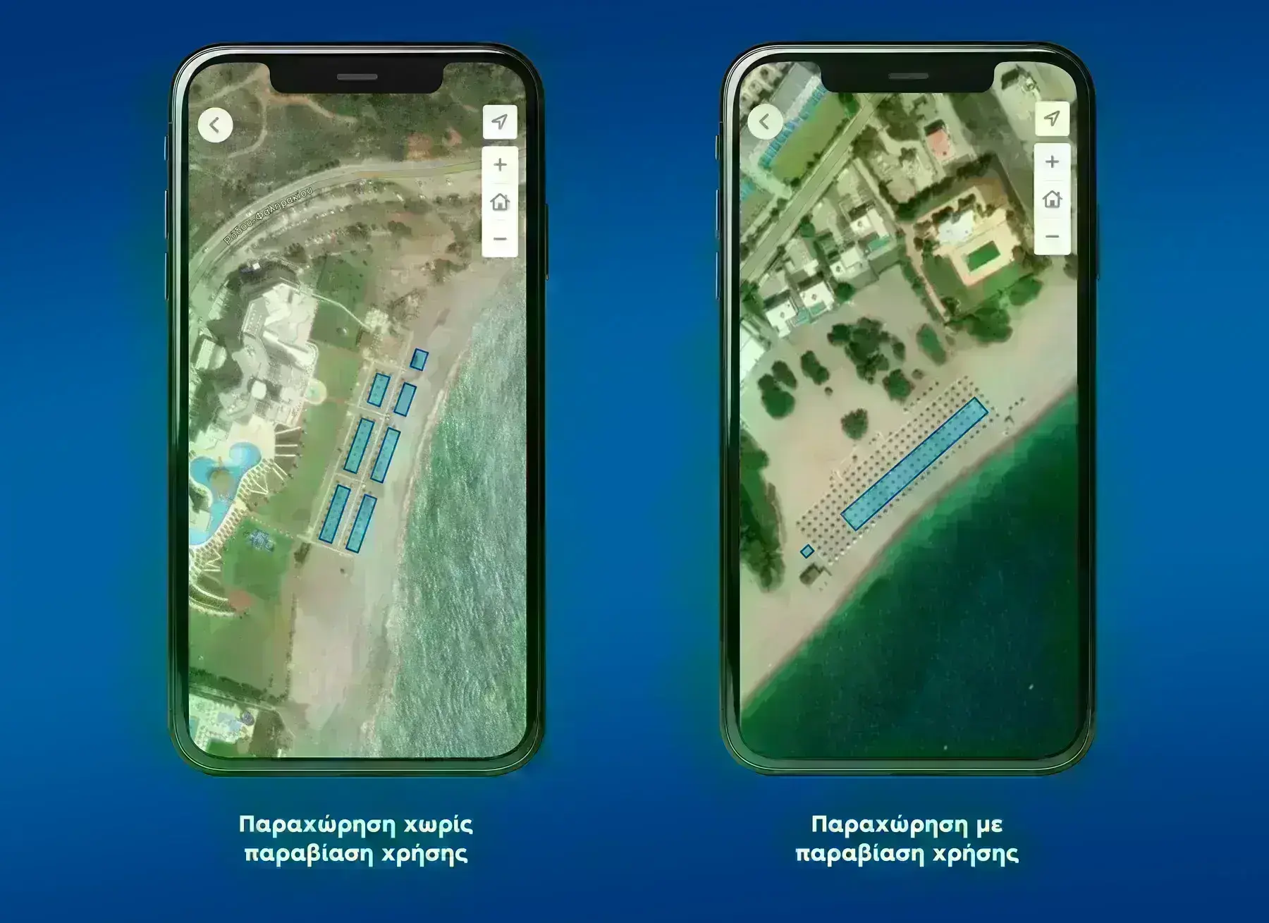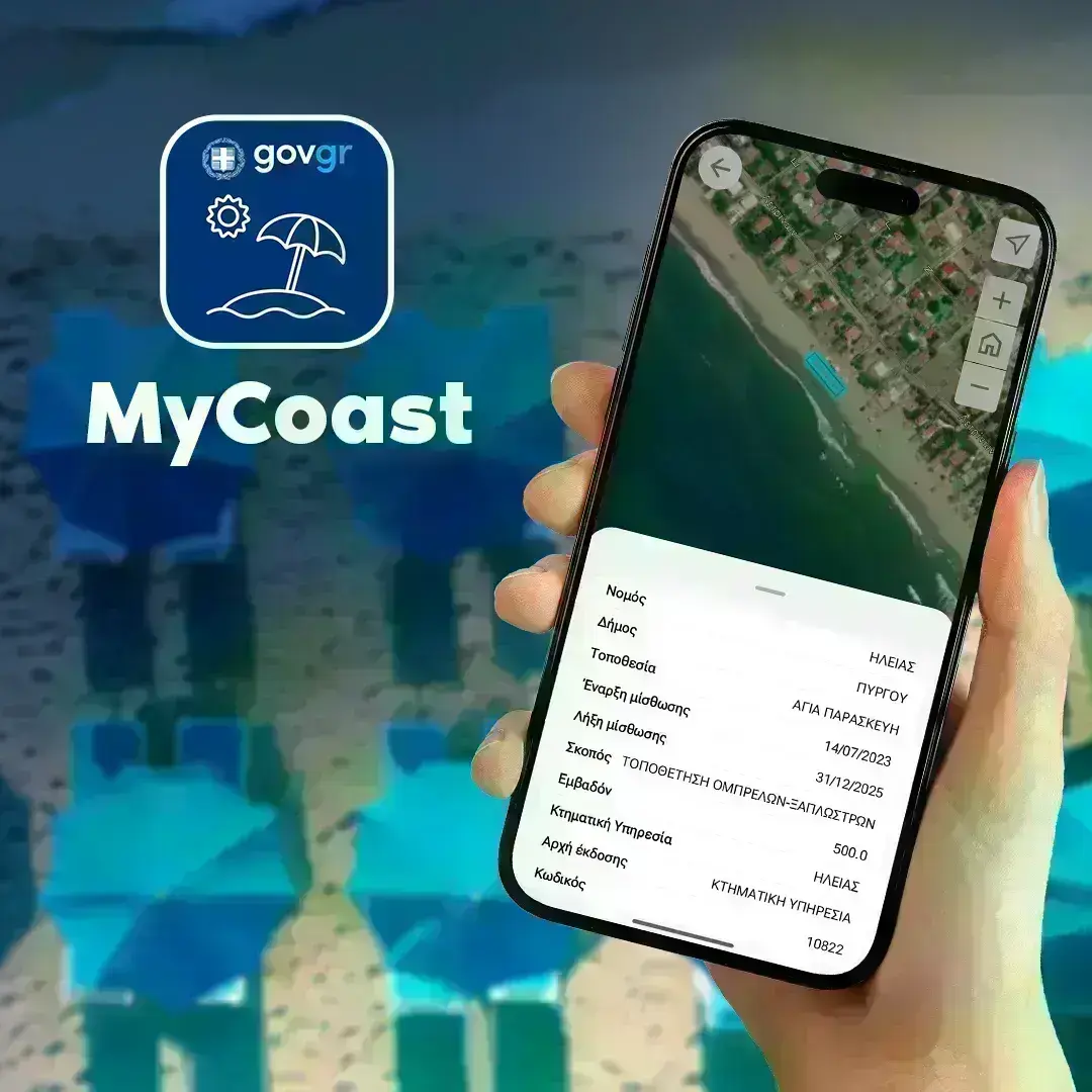 Μέσω του «MyCoast» οι πολίτες μπορούν να ελέγχουν αν στις παραλίες, στις οποίες βρίσκονται, τηρείται η νομιμότητα των όρων παραχώρησης και να υποβάλλουν σχετική καταγγελία σε περιπτώσεις υπέρβασης των παραχωρήσεων ή αυθαίρετης κατάληψης. Σε επόμενη φάση με την ενσωμάτωση εργαλείου Τεχνητής Νοημοσύνης η νομιμότητα θα ελέγχεται αυτόματα από τα πληροφοριακά συστήματα.