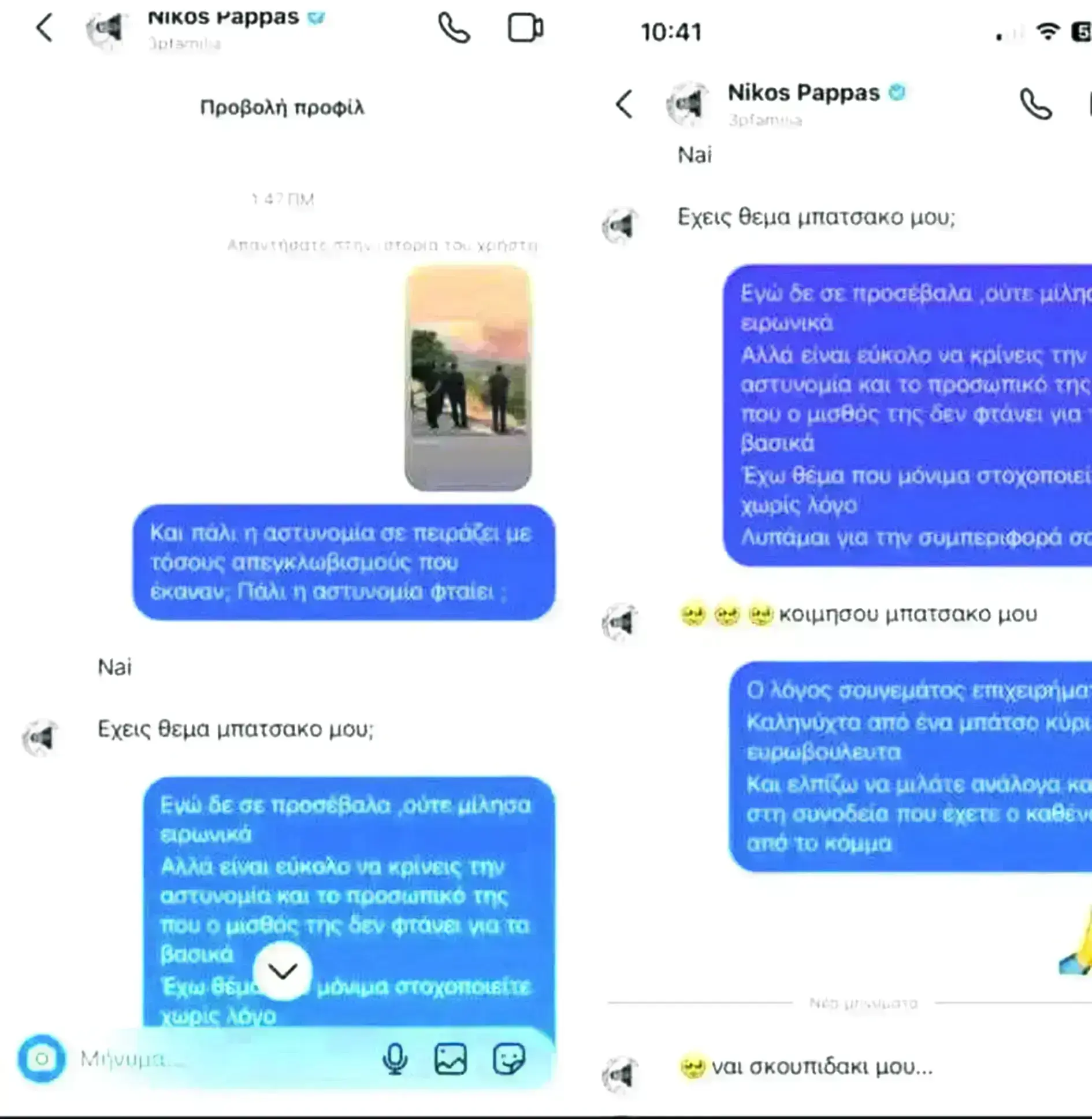»Τέλος πάντων, από εκεί και πέρα πάντα σέβομαι και αναγνωρίζω τα σώματα ασφαλείας, το γνωρίζουν και οι ίδιοι σε κατ’ ιδίαν συζητήσεις που έχουμε κάνει. Αλλά δεν δέχομαι από κανένα ακροδεξιό τρολ, κανένα φασιστάκο, από τον οποιονδήποτε, να με υποτιμάει, να με προσβάλλει και να με απειλεί εμένα και την οικογένειά μου.
