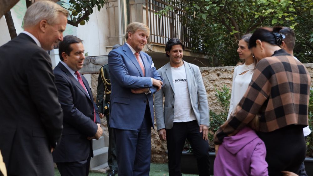Στην συνέχεια ο Βασιλιάς Willem-Alexander ξεναγήθηκε με τον κ. Μηταράκη στη Δομή Φιλοξενίας Ασυνόδευτων Ανηλίκων “Νήσος” στην Κυψέλη, όπου φιλοξενούνται παιδιά από ορφανοτροφείο της Ουκρανίας.