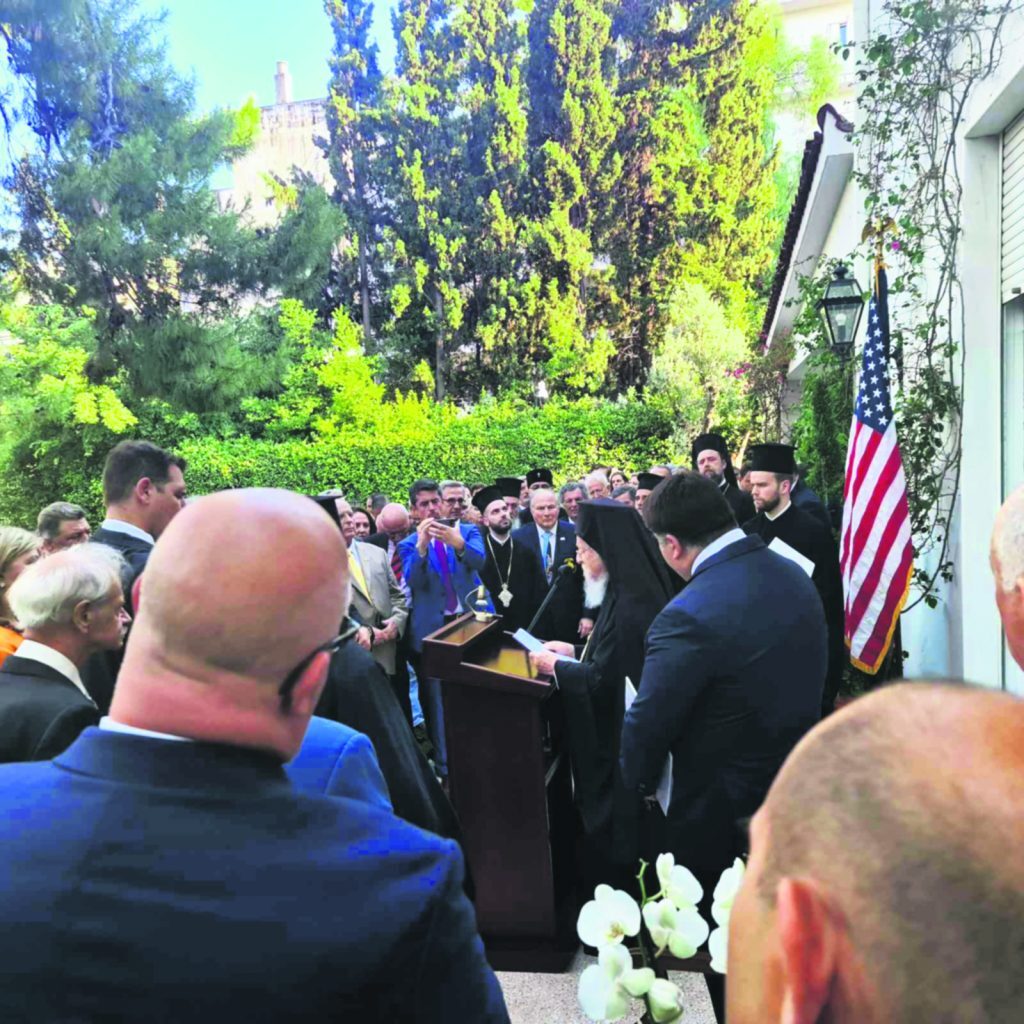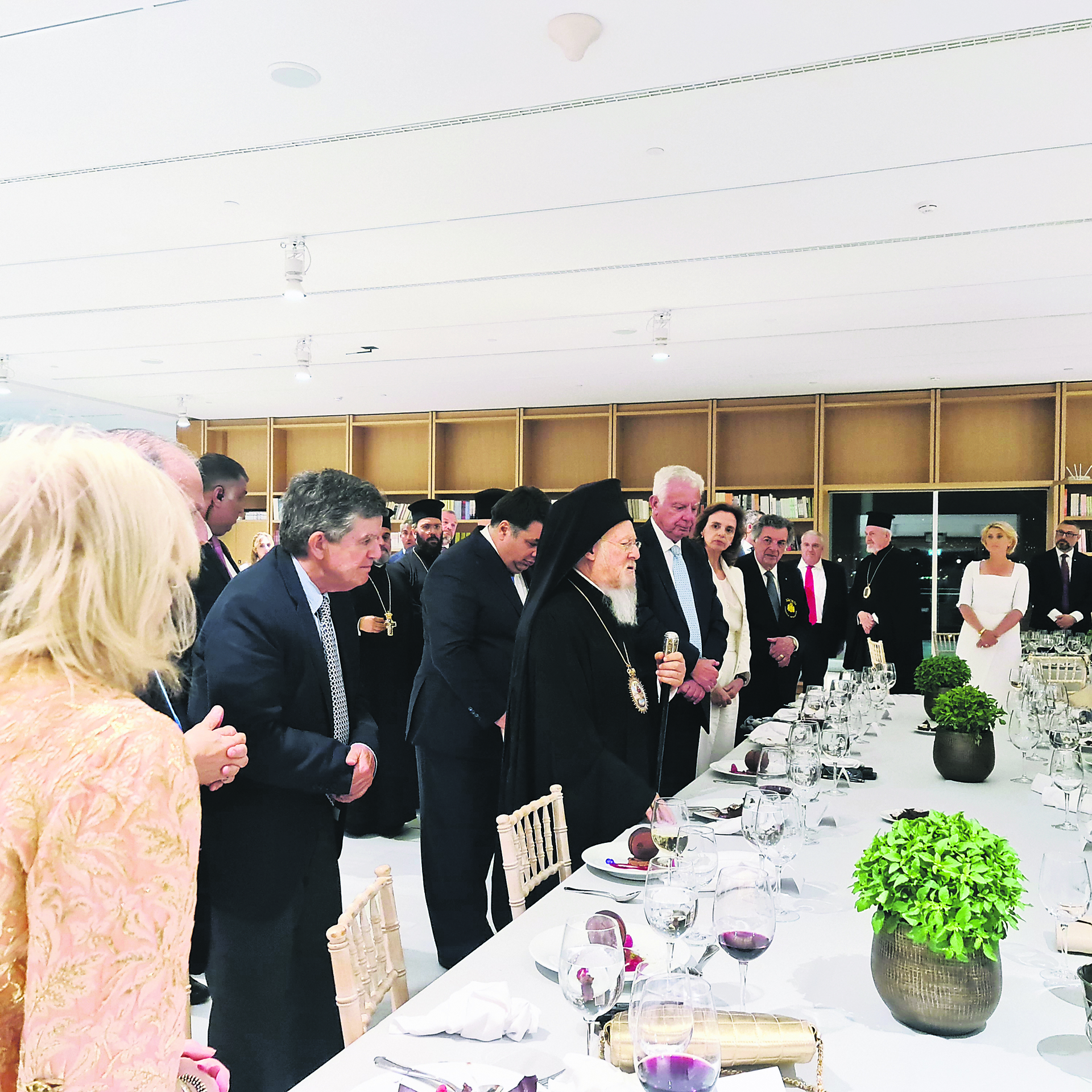 Αψογος οικοδεσπότης αποδείχθηκε ο πρέσβης Τζορτζ Τσούνης, ο οποίος χαιρέτησε προσωπικά σχεδόν όλους τους καλεσμένους και δεν αρνήθηκε μια φωτογραφία σε όσους τον πολιορκούσαν, μιλώντας τους πολλές φορές στα ελληνικά. Οταν η δίωρη δεξίωση ολοκληρώθηκε και οι κήποι άδειασαν, o Οικουμενικός Πατριάρχης και ο πρέσβης κατευθύνθηκαν προς το Κέντρο Πολιτισμού Ιδρυμα Σταύρος Νιάρχος, όπου παρατέθηκε και δείπνο προς τιμήν του κ. Βαρθολομαίου στο εντυπωσιακό Lighthouse του 8ου ορόφου σε στενότερο κύκλο.