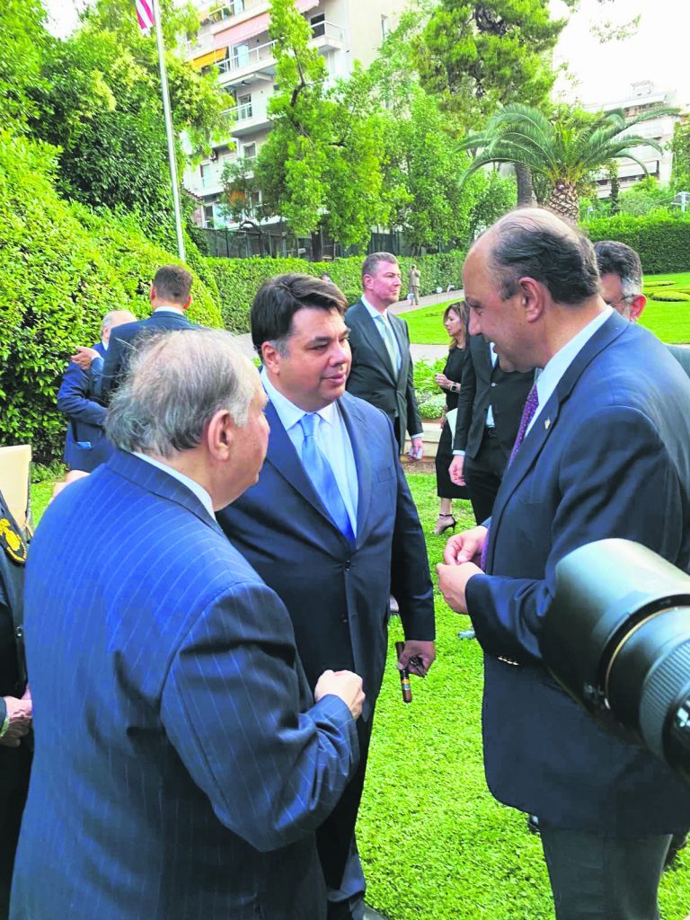 Στους κήπους της πρεσβευτικής κατοικίας τα δροσερά κοκτέιλ και τα ποτά έρρεαν άφθονα, ενώ τα γκαρσόνια περνούσαν συνεχώς από τα «πηγαδάκια» κρατώντας τους δίσκους με τα κεράσματα. Εκπρόσωποι της επιχειρηματικής ελίτ, του νομικού κόσμου, αλλά και του ιατρικού, όπως ο πρύτανης του ΕΚΠΑ, Αθανάσιος Δημόπουλος, και ο καθηγητής Σωτήρης Τσιόδρας βρέθηκαν στην εκδήλωση.