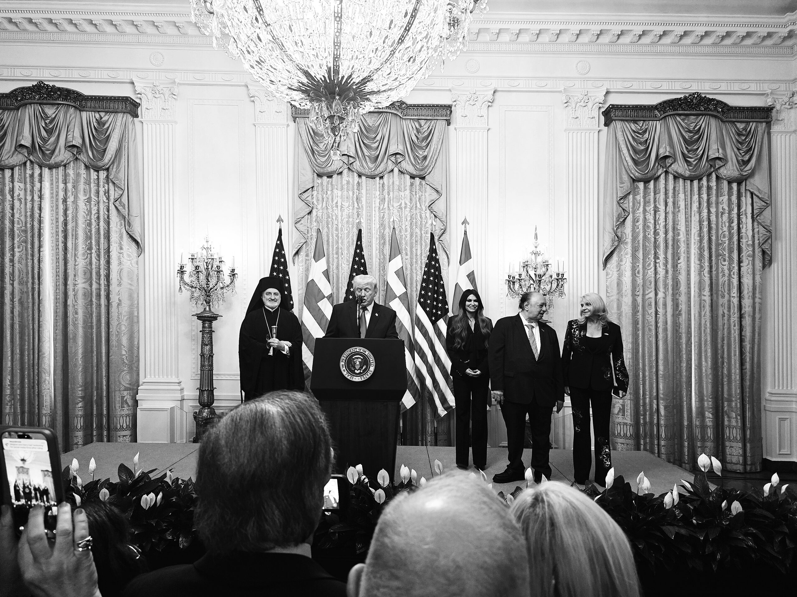 Οταν ο Ντόναλντ Τραμπ ανέβηκε στο βήμα μαζί με τον Αρχιεπίσκοπο Αμερικής Ελπιδοφόρο, τους ανέφερε έναν έναν ονομαστικά, δηλώνοντας ενθουσιασμένος που είναι συνεργάτες του.