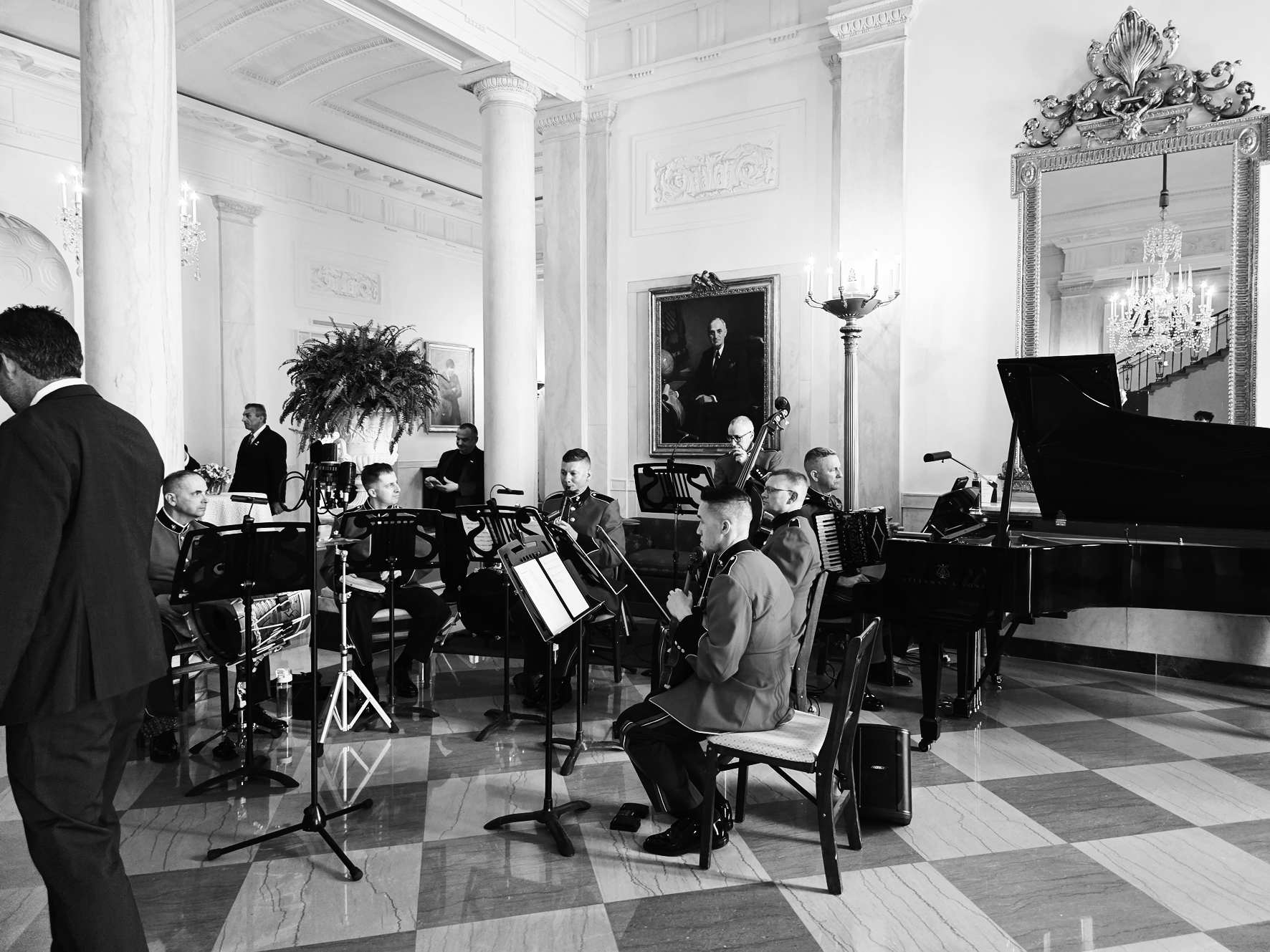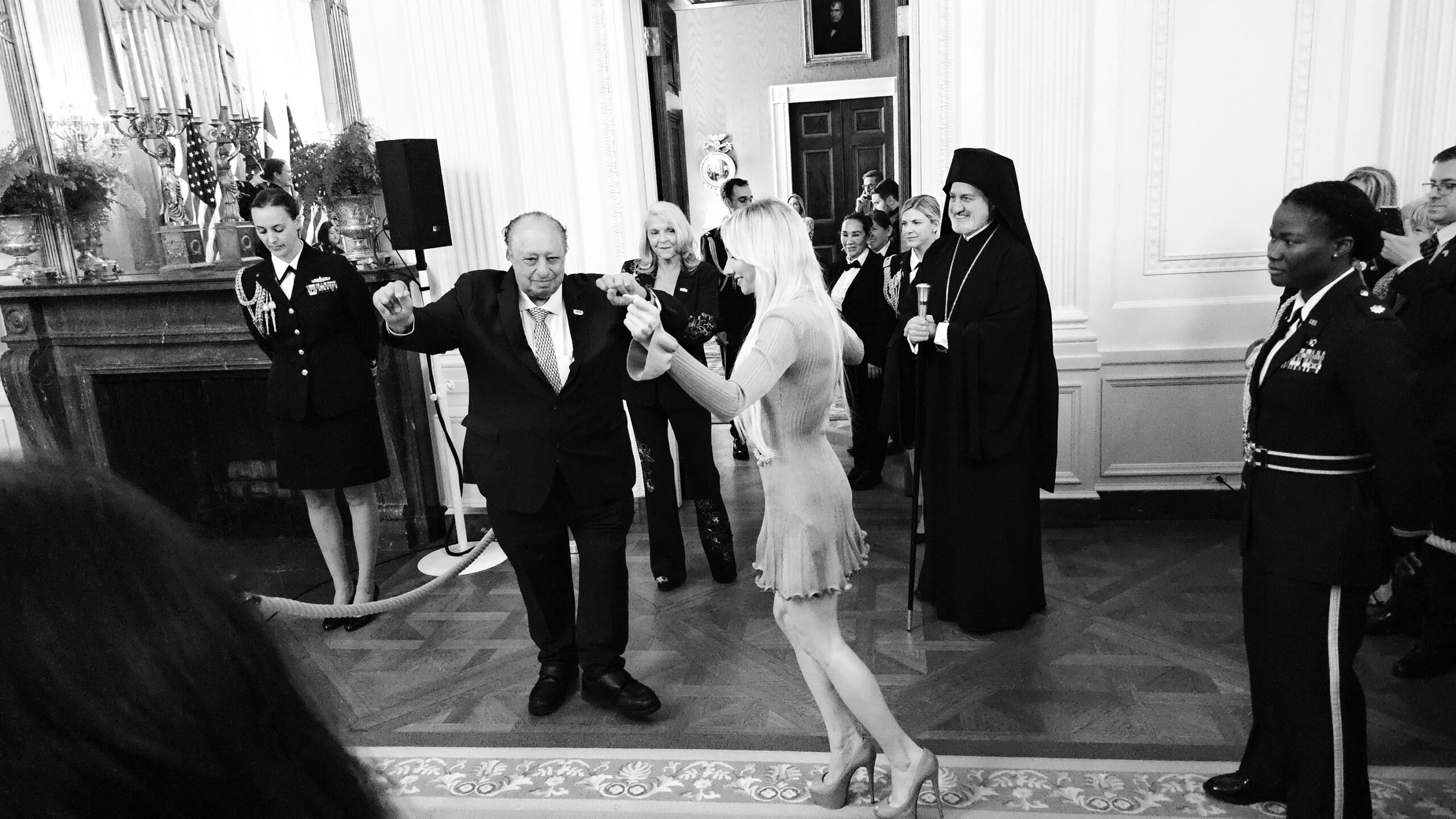 Λίγο νωρίτερα, είχε εμφανιστεί η μπάντα του Αμερικανικού Στρατού, διασκεδάζοντας τους καλεσμένους σε ελληνικούς ρυθμούς. Ο Τζον Κατσιματίδης, με τη σύζυγό του Μάργκο και την κόρη τους Αντρια, χόρεψαν συρτάκι αλλά και ικαριώτικο στον χώρο των επισήμων, ξαφνιάζοντας ευχάριστα τους υπόλοιπους καλεσμένους που τους χειροκροτούσαν.