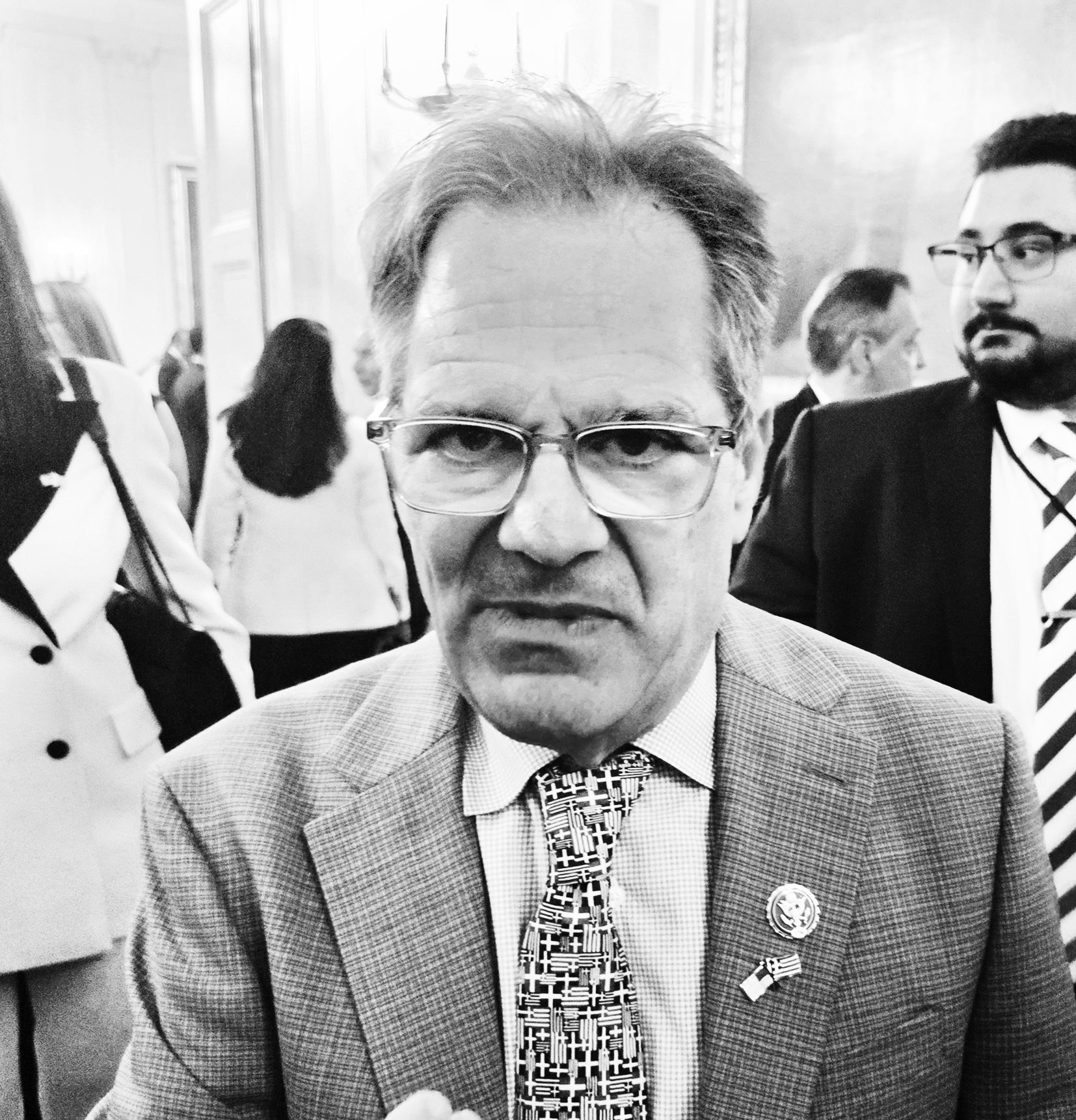 Ο αναπληρωτής υπουργός Εξωτερικών Μάικλ Ρήγας, ο επικεφαλής Επιστημών και Τεχνολογίας του Λευκού Οίκου Μάικλ Κράτσιος, η υπεύθυνη του γραφείου επισκεπτών Αλεξάνδρα Βελέτση και ο πρόεδρος των «Greeks for Trump» Χρήστος Μαραφάτσος. Με μια σχετική δυσκολία στην προφορά των ονομάτων, αναφέρθηκε και σε όλους τους Ρεπουμπλικανούς που εκλέγονται στη Βουλή των Αντιπροσώπων, ξεκινώντας από τον Γκας Μπιλιράκη.