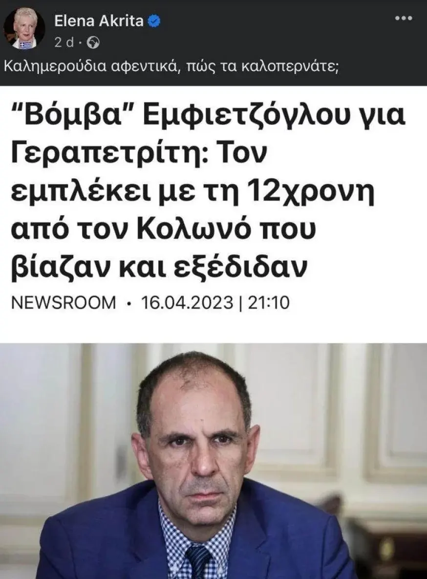 Ο κ. Γεραπετρίτης την προηγούμενη εβδομάδα κατέθεσε μήνυση εις βάρος του επιχειρηματία, και προέδρου της Πατριωτικής Ένωσης, Πρόδρομου Εμφιετζόγλου, ο οποίος έκανε αρχικά λόγο για σχέση του κ.Γεραπετρίτη με την εν λογω υπόθεση.