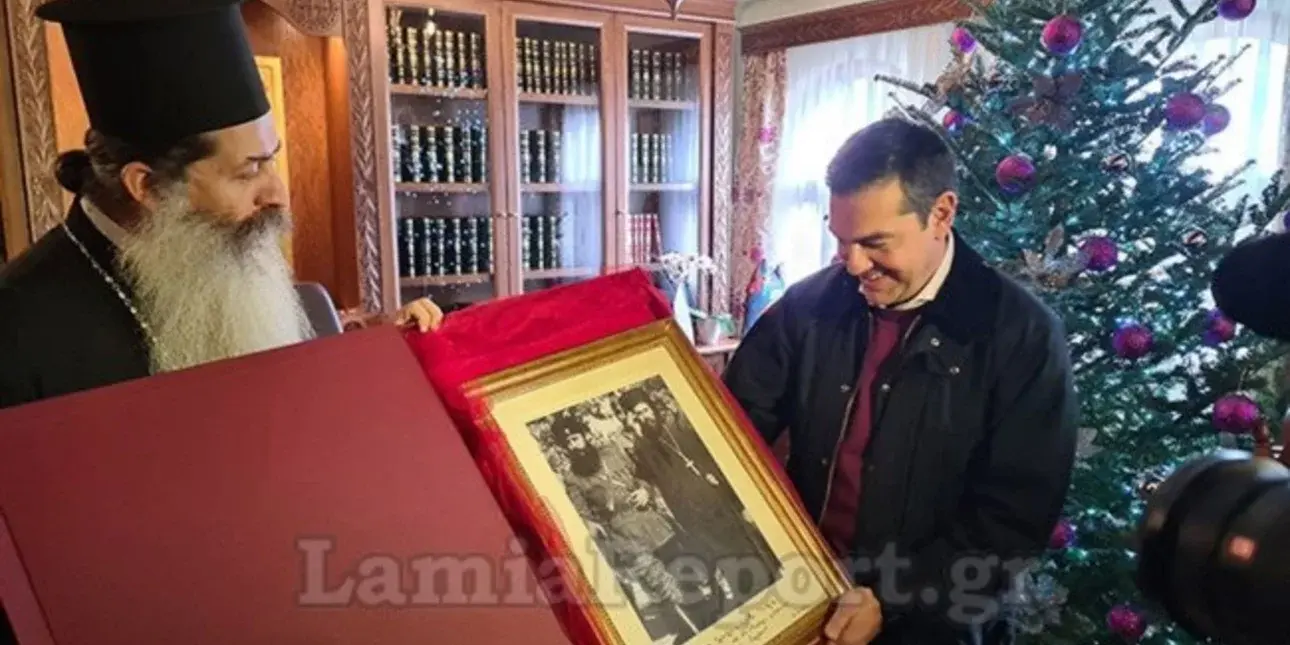 Μάλιστα ο πρόεδρος του ΣΥΡΙΖΑ – Προοδευτική Συμμαχία, δέχτηκε από τον Μητροπολίτη ένα δώρο-έκπληξη, ο οποίος επισήμανε με νόημα ότι είναι σε κόκκινη συσκευασία. Του είπε επίσης πως ελπίζει το δώρο του να βρει μια θέση στην Κουμουνδούρου, καθώς και ότι συνδέεται με την ιστορία της αντίστασης.