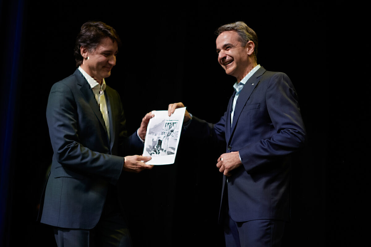 Κύριε Πρωθυπουργέ Τριντό, οι δηλώσεις σας με ενέπνευσαν τόσο πολύ. Θα αφήσω στην άκρη τη δήλωση που είχα προετοιμάσει. Επιτρέψτε μου λοιπόν, κατ’ αρχάς, να πω πόσο μεγάλη τιμή είναι για εμένα να βρίσκομαι εδώ μαζί σας σήμερα. Είναι τιμή μου να είμαι ο πρώτος Έλληνας Πρωθυπουργός εδώ και 41 χρόνια που επισκέπτεται επίσημα τον Καναδά, μία χώρα με την οποία μας συνδέουν τόσο ισχυροί δεσμοί.