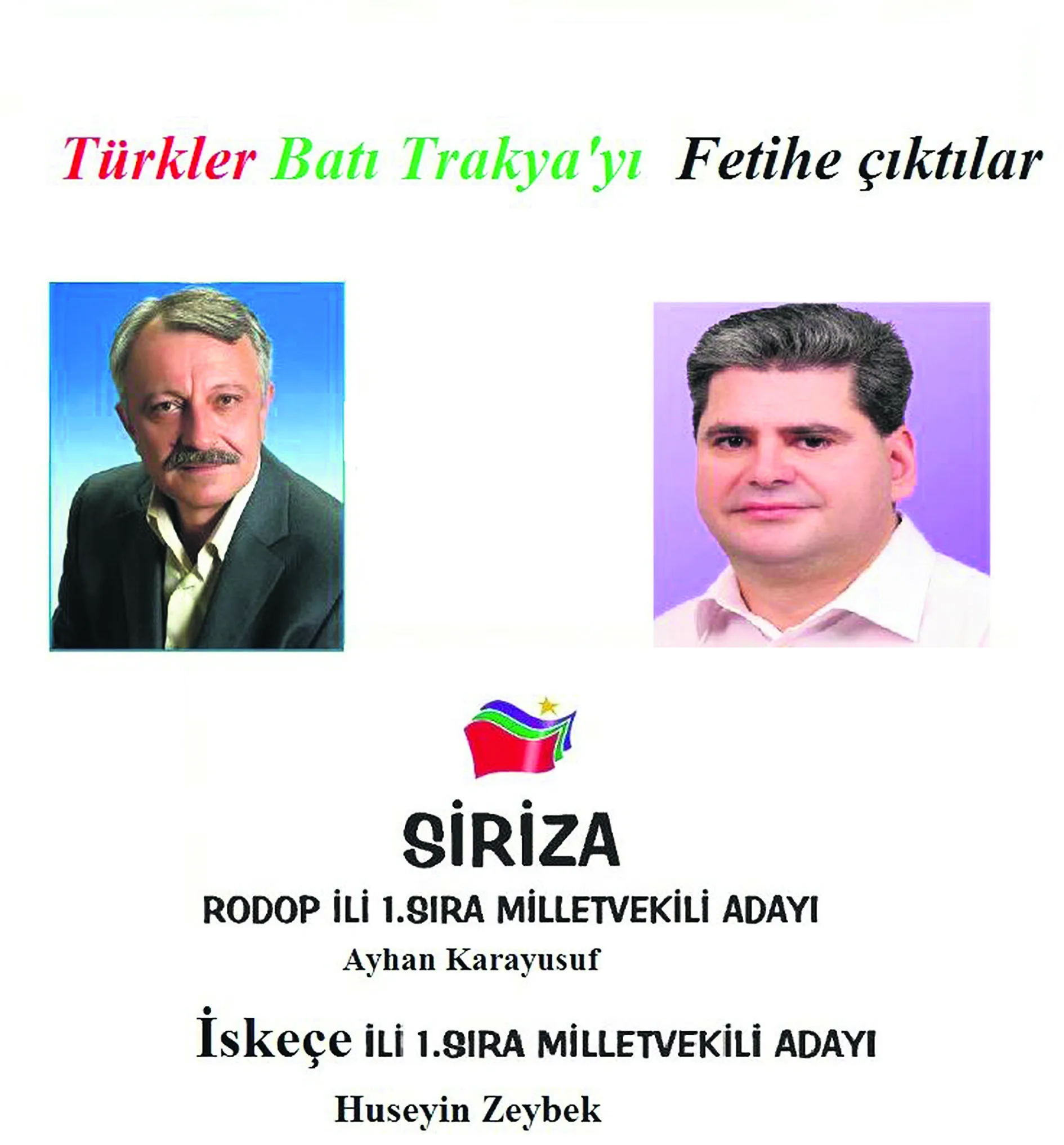 Δεν είναι η πρώτη φορά που ο Χουσεΐν Ζεϊμπέκ απασχολεί την επικαιρότητα με τις… φιλοτουρκικές τοποθετήσεις του. Λίγες μέρες πριν από τις κάλπες του Ιουνίου 2012 είχε προκαλέσει και πάλι την Κουμουνδούρου με τη στάση του, αλλά και τότε είχε μείνει ατιμώρητος. Σε εκείνες τις εκλογές οι δύο υποψήφιοι του ΣΥΡΙΖΑ στην Ξάνθη, Χουσεΐν Ζεϊμπέκ και Αϊχάν Καρά Γιουσούφ, είχαν γεμίσει τα μέσα κοινωνικής δικτύωσης με μία συγκεκριμένη αφίσα. Επίσημα, δεν το έκαναν οι ίδιοι. Οπως επίσης δεν έκαναν το παραμικρό για τη μη διακίνησή της. Στην επίμαχη αφίσα ξεχώριζαν η λέξη ΣΥΡΙΖΑ, οι φωτογραφίες των δύο υποψηφίων, καθώς και τα ονόματά τους. Ωστόσο, η επικεφαλίδα της ήταν σκέτο «δηλητήριο»: «Οι “Τούρκοι” άρχισαν να κατακτούν τη “Δυτική” Θράκη». Πέρα από το προκλητικό του μηνύματος αξίζoυν να αναφερθούν και τα χρώματα που επιλέχθηκαν για να περάσει πιο εύκολα το νόημα. Το «Turkler», που αναφέρεται στο τουρκικό έθνος, είναι γραμμένο με κόκκινο χρώμα, εθνικό χρώμα της γειτονικής χώρας. Η υπόλοιπη φράση ήταν γραμμένη με πράσινα και μαύρα γράμματα, δηλαδή με τα χρώματα που έχει και η λεγόμενη σημαία του «ανεξάρτητου κράτους της Δυτικής Θράκης»!!!