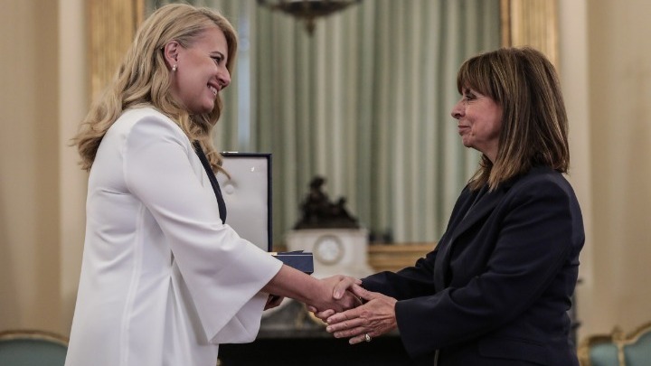 Με τη σειρά της, η Πρόεδρος της Δημοκρατίας της Σλοβακίας απένειμε στην κ. Σακελλαροπούλου το Παράσημο του Μεγαλόσταυρου του Τάγματος του Λευκού Διπλού Σταυρού.
