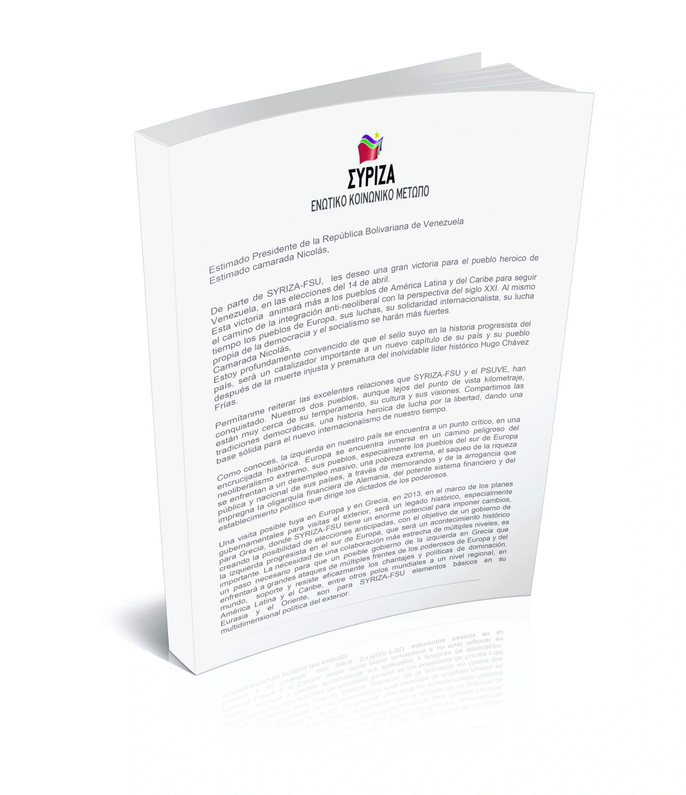Στην επιστολή αυτή, μάλιστα, ο τότε πρόεδρος του ΣΥΡΙΖΑ αναφέρεται και στον Τεμίρ Πόρας, στενό συνεργάτη του Μαδούρο, ο οποίος είχε επισκεφθεί την Αθήνα και επισημαίνει πως αναμένει την «εμφανή στήριξη» του Μαδούρο εν όψει των επικείμενων εθνικών εκλογών στην Ελλάδα. Μεταξύ άλλων, ανέφερε στην επιστολή του ο κ. Τσίπρας: «Εφιστώ την προσοχή σου σε ένα ευαίσθητο θέμα, στο οποίο περιμένω τη συμβολή σου και την παρέμβασή σου με τον καλύτερο τρόπο, το ήδη γνωστό σ’ εσάς ζήτημα που έχει προκύψει με τον νέο πρέσβη στην Αθήνα. Μέχρι στιγμής, το προσωπικό της πρεσβείας έχει επιδείξει πολιτική ωριμότητα και δεν θα λάβει μέτρα εντός της Ελλάδας, που θα δημοσιοποιούσαν το πρόβλημα, γεγονός που θα το εκμεταλλεύονταν στο έπακρο τα συστημικά Μέσα Ενημέρωσης για να βλάψουν την Αριστερά τόσο στη Βενεζουέλα όσο και στην Ελλάδα».