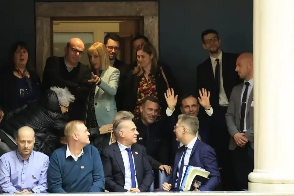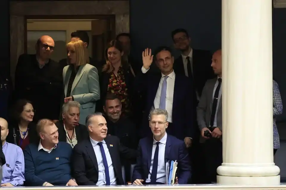 Ο κ. Σκέρτσος καθόταν μαζί με άτομα της ΛΟΑΤΚΙ κοινότητας, ενώ κοντά του βρίσκονταν ο παρουσιαστής Φώτης Σεργουλόπουλος και ο ηθοποιός-σκηνοθέτης Γιώργος Καπουτζίδης, οι οποίοι παρακολουθούσαν από νωρίς τη διαδικασία από τα θεωρεία.