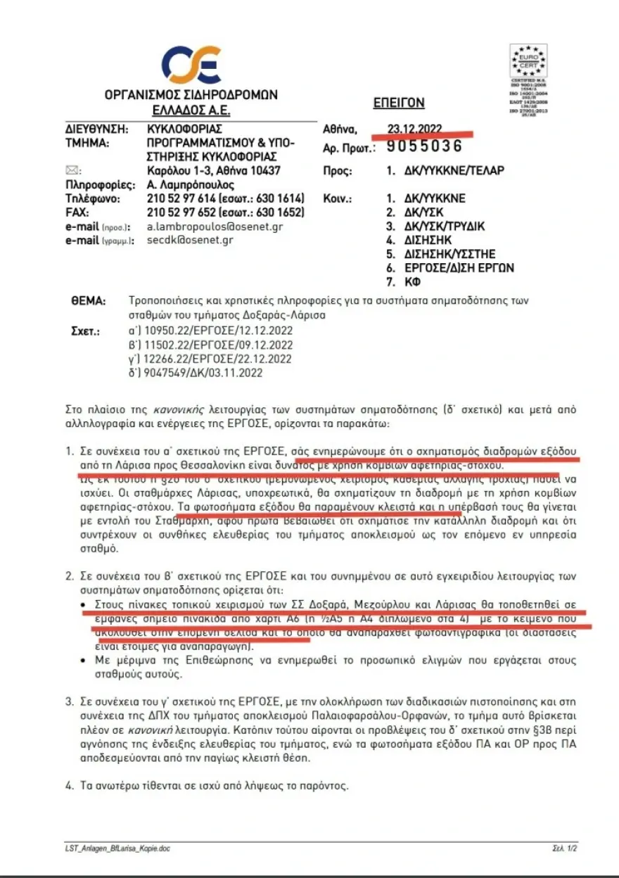 Ο κ. Παπάς επικαλείται εσωτερικά έγγραφα του ΟΣΕ, στα οποία γίνεται λόγος «για κόκκινα φανάρια, για χειρισμό κουμπιών με το χέρι αλλά και για τη χρήση μανιβέλας». «Όσα ψέματα και να αραδιάζουν δεν πείθουν. Ούτε για το αφήγημα του «ανθρώπινου λάθους» ούτε για το «δεν ήξερα» του Μητσοτάκη» κατέληξε.