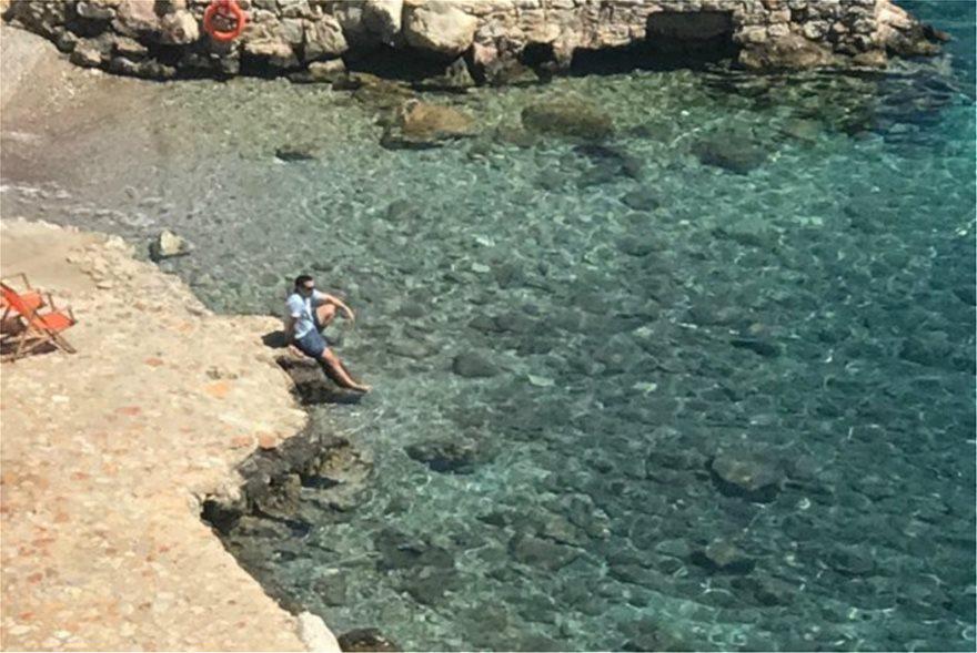 Ο πρωθυπουργός πέρασε στιγμές χαλάρωσης και αυτό αποδεικνύεται και από την φωτογραφία που δημοσίευσε η «Εφημερίδα των Συντακτών», ο οποίος απολαμβάνει τη θάλασσα.