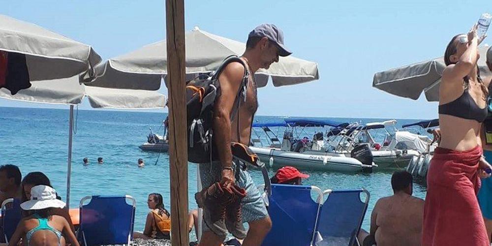 Με ένα σακίδιο στον ώμο, καπέλο, αθλητικά παπούτσια και αξύριστος πέρασε σχεδόν απαρατήρητος από τον κόσμο και φάνηκε να απολαμβάνει ιδιαίτερα τις διακοπές του στα Σφακιά.