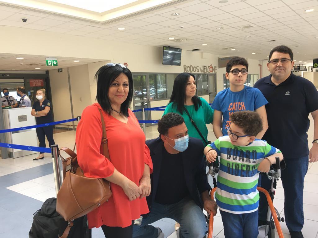 Τον υπουργό Υγείας περίμενε μια ευχάριστη έκπληξη αμέσως μόλις προσγειώθηκε: Ο 8χρονος Μιχάλης που πάσχει από σπαστική τετραπληγία.