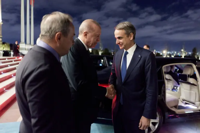 Ο Ρετζέπ Ταγίπ Ερντογάν υποδέχθηκε εγκάρδια τον Ελληνα Πρωθυπουργό και η στάση του σώματος έδειχνε ότι δεν υπήρχε αμηχανία για κανένα από τους δύο.