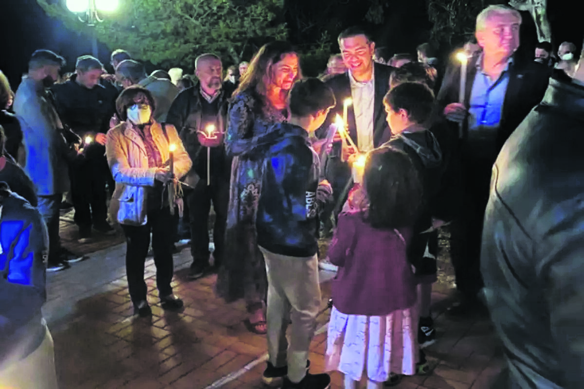 Ηρθε το Αγιο Φως, τελείωσαν οι ασπασμοί και οι ευχές και ο τέως πρωθυπουργός μαζί με την Μπέτυ Μπαζιάνα και τα παιδιά τους έβγαιναν από τον περίβολο της εκκλησίας. «Γεια σου, πρόεδρε. Με τη νίκη. Αντε να ξεκουμπιστεί ο Μητσοτάκης», του φώναξε κάποιος που περίμενε στην πόρτα.