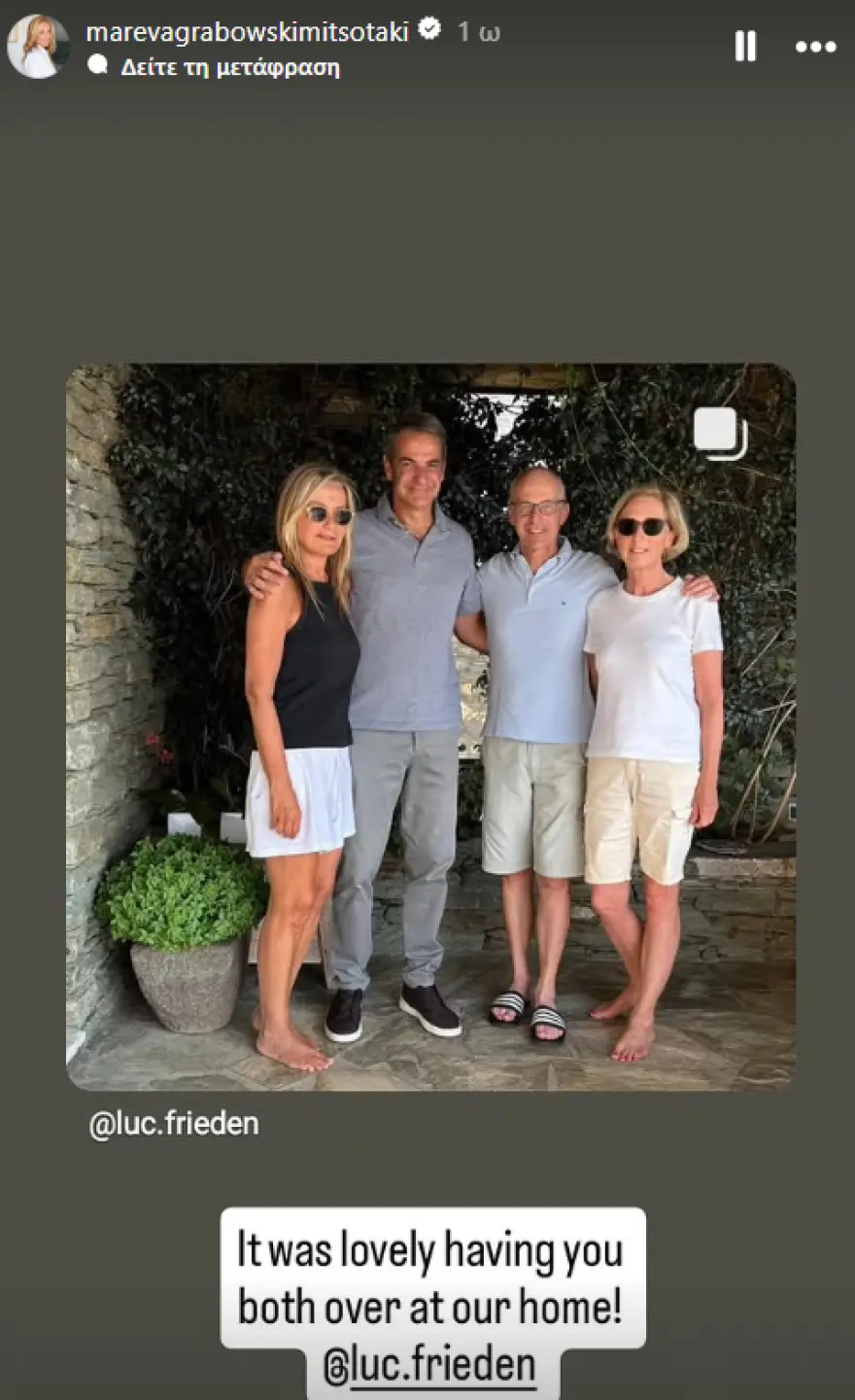 Σχετική ανάρτηση έκανε και η Μαρέβα Γκραμπόφσκι αναδημοσιεύοντας την φωτογραφία του Λικ Φρίντεν και πρόσθεσε: «Ηταν υπέροχα που σας φιλοξενήσαμε στο σπίτι μας».