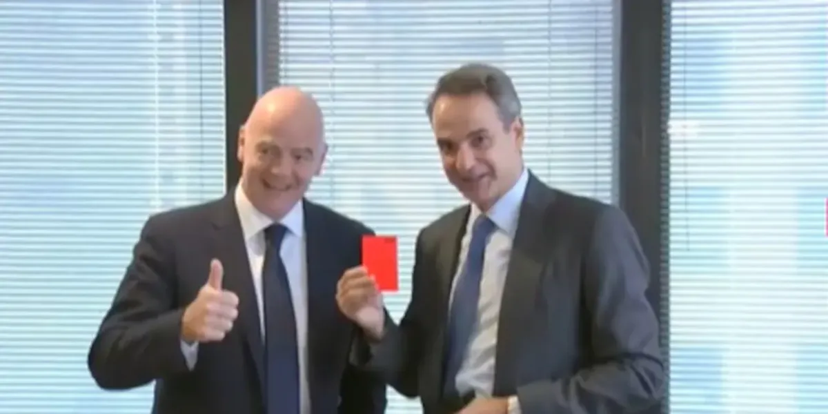 Οι δύο άνδρες συνομίλησαν κυρίως με θέμα την οπαδική βία και την αντιμετώπισή της, με τον πρόεδρο της FIFA να κάνει δώρο στον πρωθυπουργό μία μπάλα, αλλά και το πορτοφόλι των διαιτητών με μία κίτρινη και μία κόκκινη κάρτα.