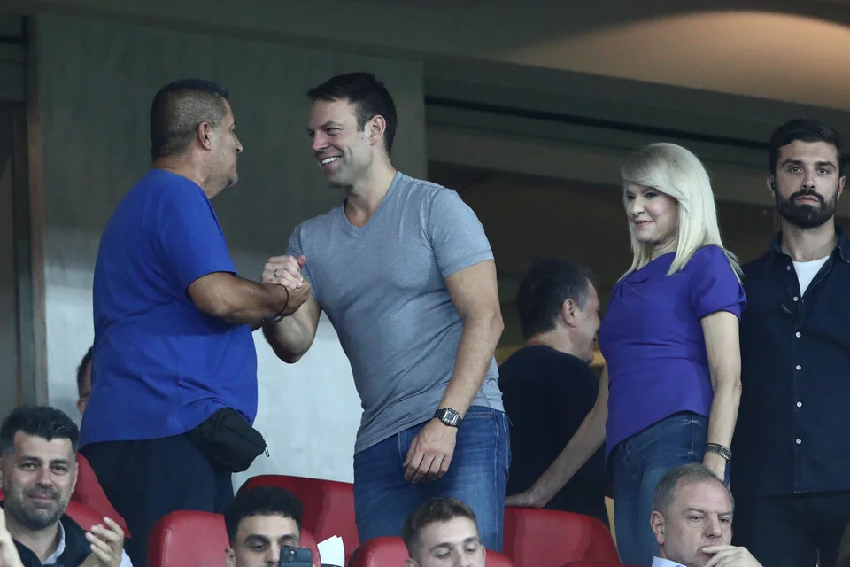 Ο Στέφανος Κασσελάκης και η βουλευτής του ΣΥΡΙΖΑ Θεοδώρα Τζάκρη έδωσαν το «παρών» στα επίσημα του γηπέδου ώστε να παρακολουθήσουν το παιχνίδι της Εθνικής κόντρα στους Ιρλανδούς, στο πλαίσιο του Nations League.