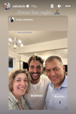 Συγκεκριμένα ο Σάκης φωτογραφήθηκε στη Νάξο με τον αναπληρωτή υπουργό Αθλητισμού της Κυβέρνησης, Ιωάννη Βρούτση.