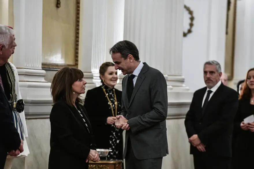 Μετά τη συνάντηση της με καλλιτέχνες, η κυρία Σακελλαροπούλου μαζί με τον υπουργό Εξωτερικών, Νίκο Δένδια και τον αντιπρόεδρο της κυβέρνησης, Παναγιώτη Πικραμμένο, δέχθηκαν τις ευχές των πρεσβευτών και των επιτετραμμένων των διπλωματικών αντιπροσωπειών στην Ελλάδα και στη συνέχεια ακολούθησε η δεξίωση στον χώρο του προεδρικού μεγάρου.