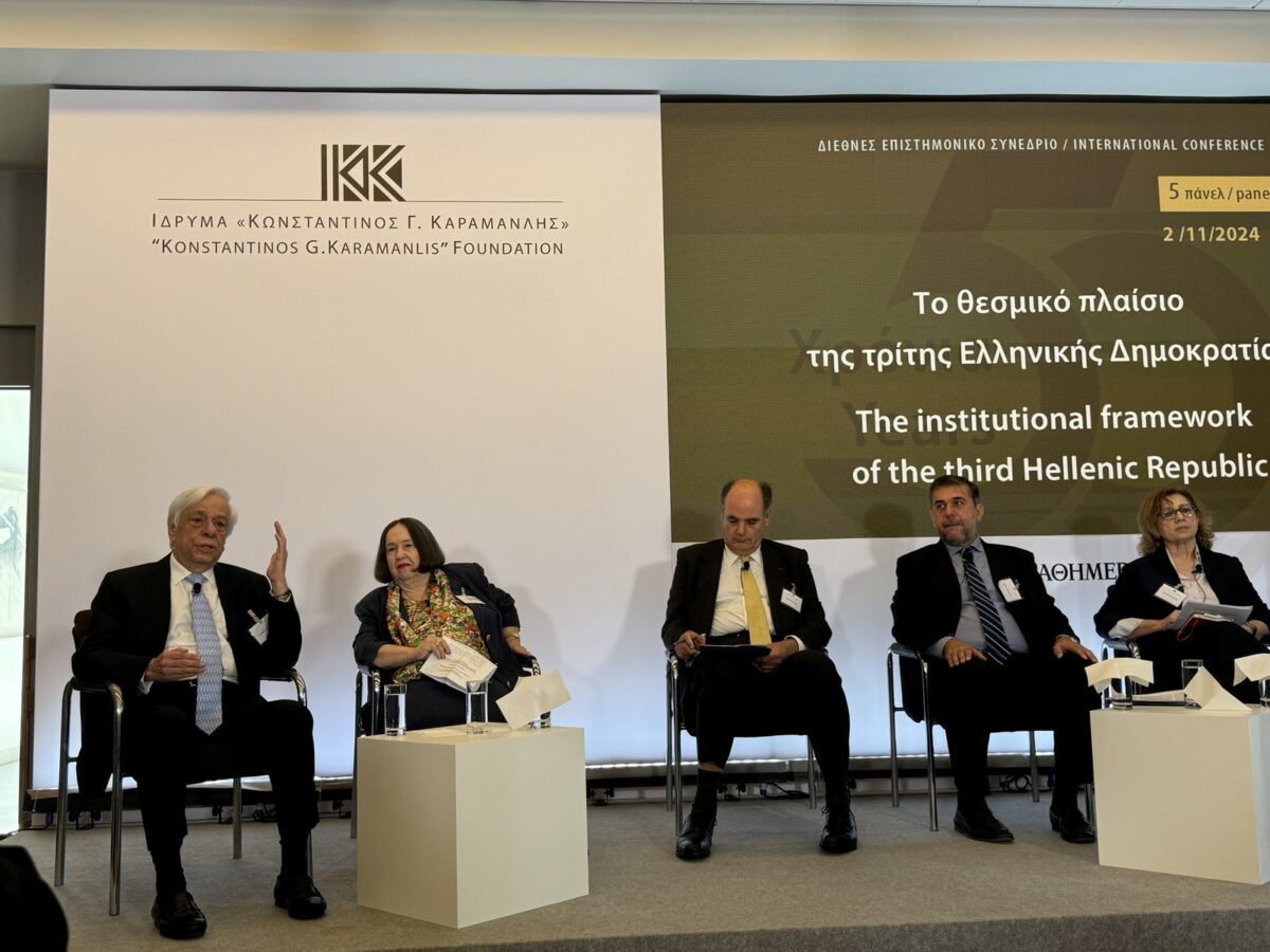 Καθ’ όλη την διάρκεια της πολιτικής του σταδιοδρομίας, υπό την πρωθυπουργική του -και όχι μόνο- ιδιότητα, ο Κωνσταντίνος Καραμανλής επέλεξε να δώσει, ιδίως σε κρίσιμες πολιτικές και πολιτειακές περιόδους, εμφανή προτεραιότητα στις αναγκαίες για τον Τόπο θεσμικές τομές. Κυρίως δε σε τομές οι οποίες συνδέονται αρρήκτως με την Αναθεώρηση του Συντάγματος. Πολλοί είναι οι λόγοι που δικαιολογούν την κορυφαία και υπεύθυνη αυτή επιλογή του. Οι σπουδαιότεροι εξ’ αυτών απορρέουν εκ του ότι η όλη ηγετική πολιτική φυσιογνωμία του Κωνσταντίνου Καραμανλή του επέτρεψε, οιονεί «προφητικώς», να διαγνώσει -με την συνδρομή και της νομικής του παιδείας, που μπορεί να μην υπήρξε εκτεταμένη πλην όμως ήταν, σε συνδυασμό με την απαράμιλλη πολιτική του διαίσθηση και εμπειρία, αρκούντως συγκροτημένη και στέρεη για μια τέτοια «διάγνωση»– το πόσο ο εκσυγχρονισμός της Ελλάδας «περνάει», αναγκαίως, και μέσ’ από τον αντίστοιχο εκσυγχρονισμό των Πολιτικών και Πολιτειακών Θεσμών, κατ’ εξοχήν δε εκείνων που εγγυώνται την ομαλή δημοκρατική λειτουργία του Πολιτεύματος. Το υπό τα ως άνω χαρακτηριστικά θεσμικό «αποτύπωμα» του Κωνσταντίνου Καραμανλή ανιχνεύεται, μ’ εξαιρετική ενάργεια, και στις δύο περιόδους της διακυβέρνησης της Χώρας από τις Κυβερνήσεις του, δηλαδή πριν και μετά την Μεταπολίτευση. Με βάση την θεματική του Συνεδρίου θα εστιάσω την παρέμβασή μου κυρίως στην δεύτερη από τις ως άνω δύο περιόδους: