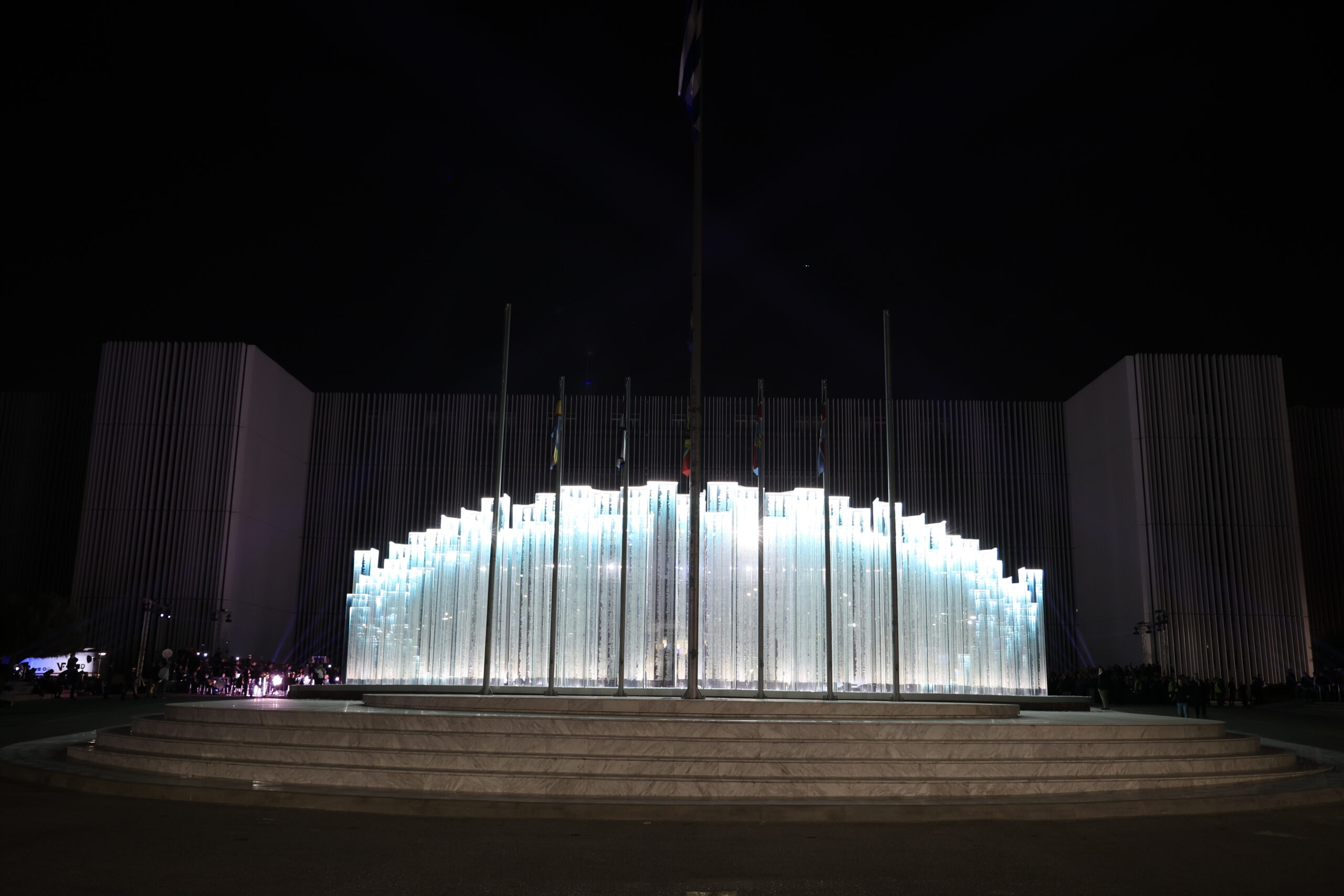 Ο Κυριάκος Μητσοτάκης ανέφερε ότι «η ίδια η διαμόρφωση της εντυπωσιακής αυτής πρόσοψης φιλτράρει το φως του παρόντος, διατηρώντας τη διαύγεια του παρελθόντος, αντανακλά όμως παράλληλα το δυναμισμό του μέλλοντος».