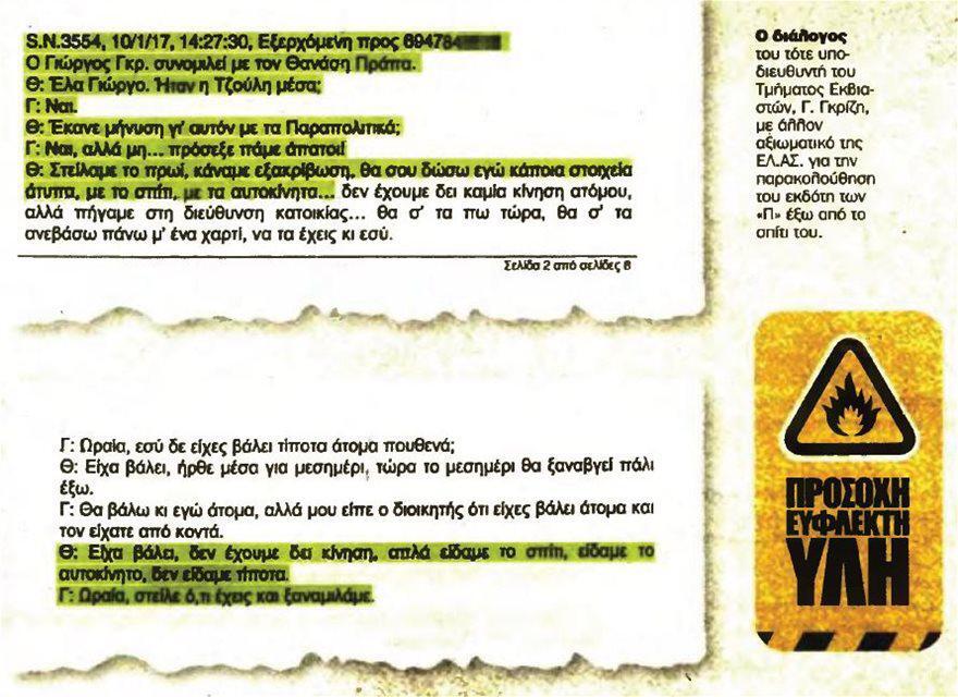 Στις συνομιλίες μεταξύ των Αξιωματικών της ΕΛΑΣ (Γιώργος Γκρίζης και Θανάσης Πράπας) καταγράφεται και η φυσική παρακολούθηση του εκδότη, Γιάννη Κουρτάκη: