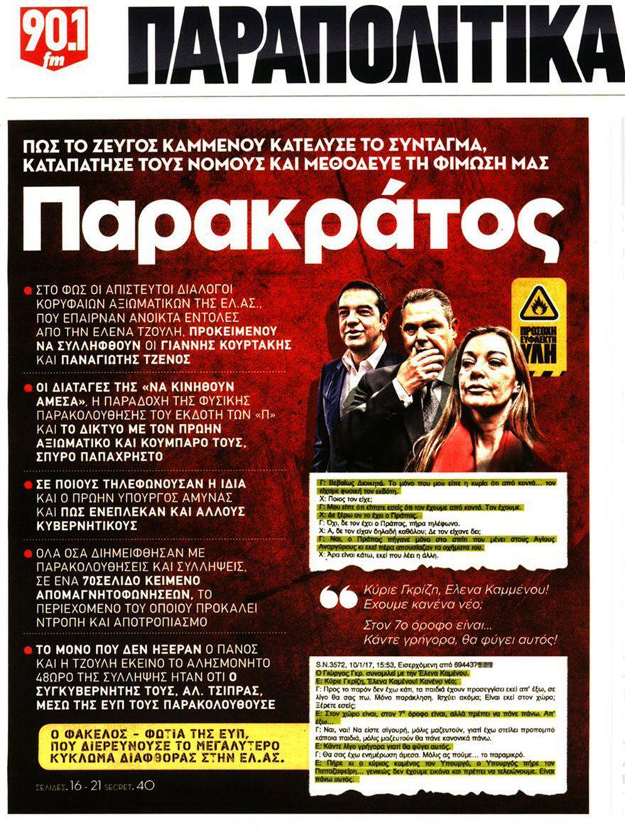 Από τις αποκαλύψεις προκύπτει ότι ο ίδιος ο κ. Τσίπρας ήταν σε γνώση της δράσης του παρακράτους, ύστερα από ενημέρωση του τότε αρχηγού της ΕΥΠ.