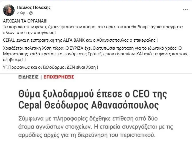 Τα κοράκια των φαντς έχουν φτάσει τον κόσμο στα όριά του και θα δούμε άγρια πράγματα πλέον από την απόγνωση! CEPAL, είναι η εισπρακτική της ALFA BANK και ο Αθανασόπουλος ο επικεφαλής!