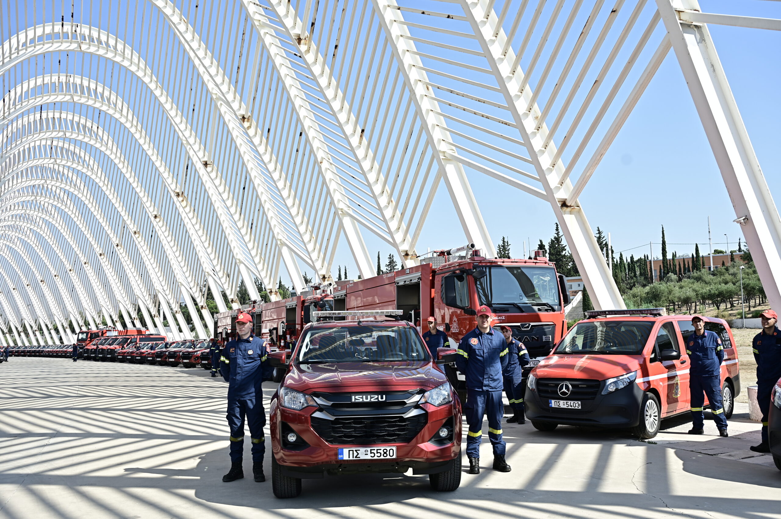 «Με τα μέσα αυτά βελτιώνεται ο χρόνος αντίδρασης σε φωτιές. Αποτελούν μέρος του προγράμματος ΑΙΓΙΣ για τη στήριξη των πυροσβεστών ενισχύοντας την ασφάλεια τους και την επιχειρησιακή τους δυνατότητα. Εντός του 2025 θα παραλάβουμε 296 οχήματα και το 2026 άλλα 331 με χρήματα από το Ταμείο Ανάκαμψης. Με το τέλος του ΑΙΓΙΣ το Πυροσβεστικό Σώμα θα διαθέτει 1.400 νέα οχήματα» τόνισε ο υπουργός Κλιματικής Αλλάγης.