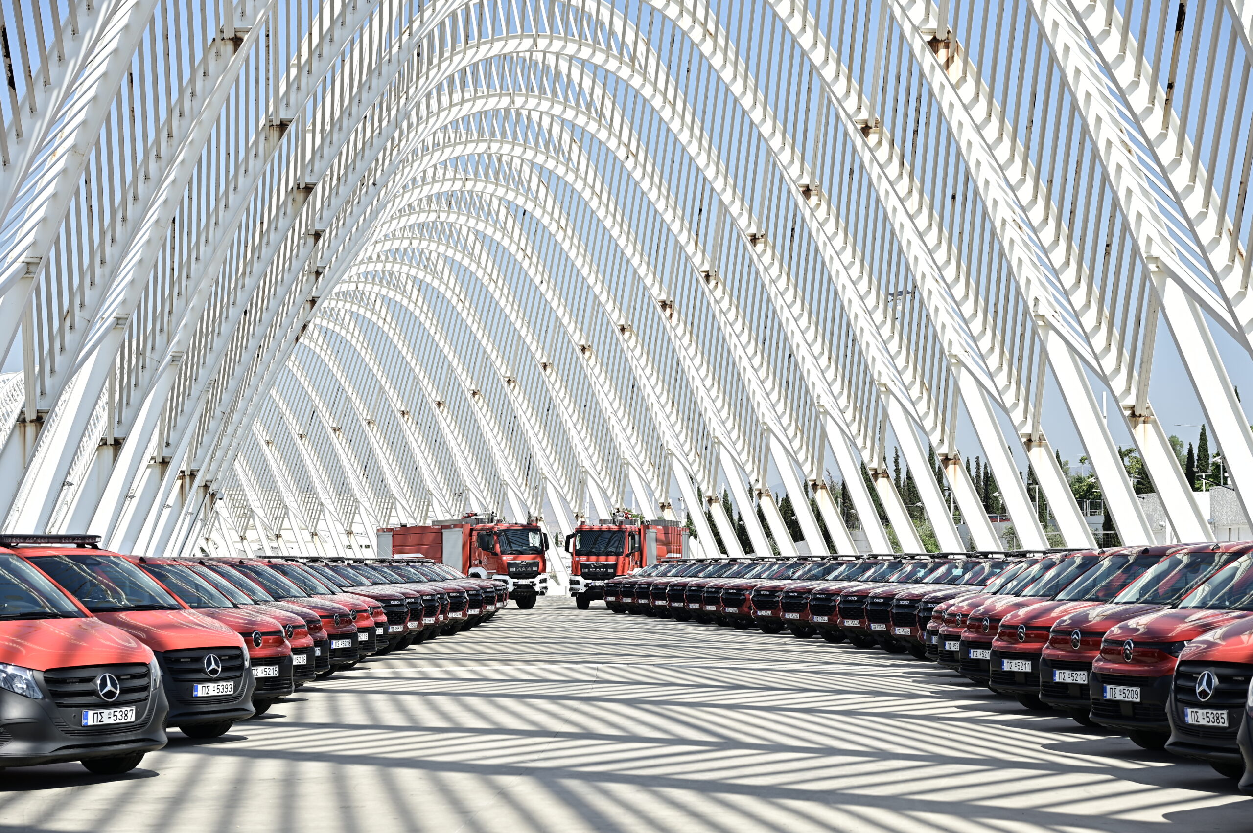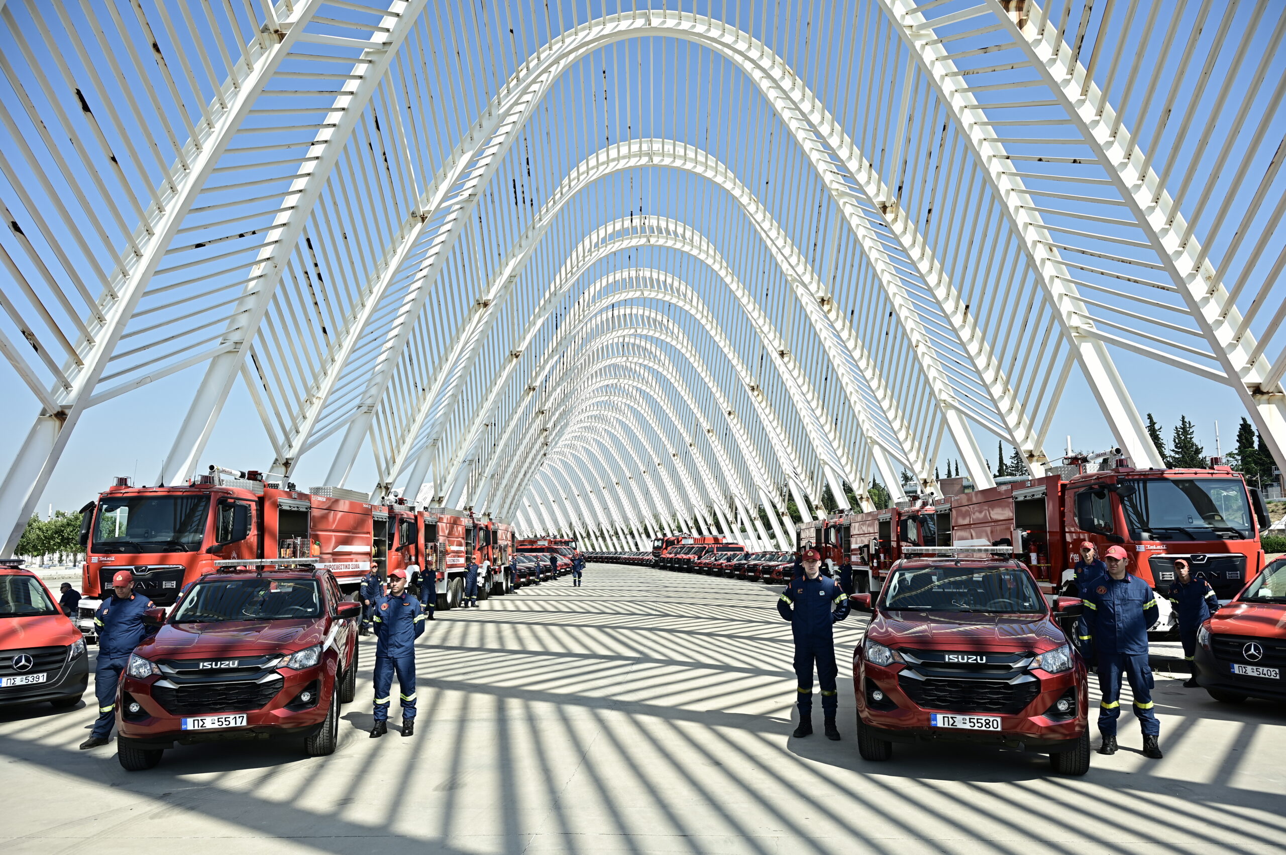 Στο ΟΑΚΑ παρουσία του πρωθυπουργού Κυριάκου Μητσοτάκη πραγματοποιήθηκε η τελετή παράδοσης 164 νέων οχημάτων στην Πυροσβεστική Εκδήλωση για την παράδοση νέων οχημάτων στο Πυροσβεστικό Σώμα