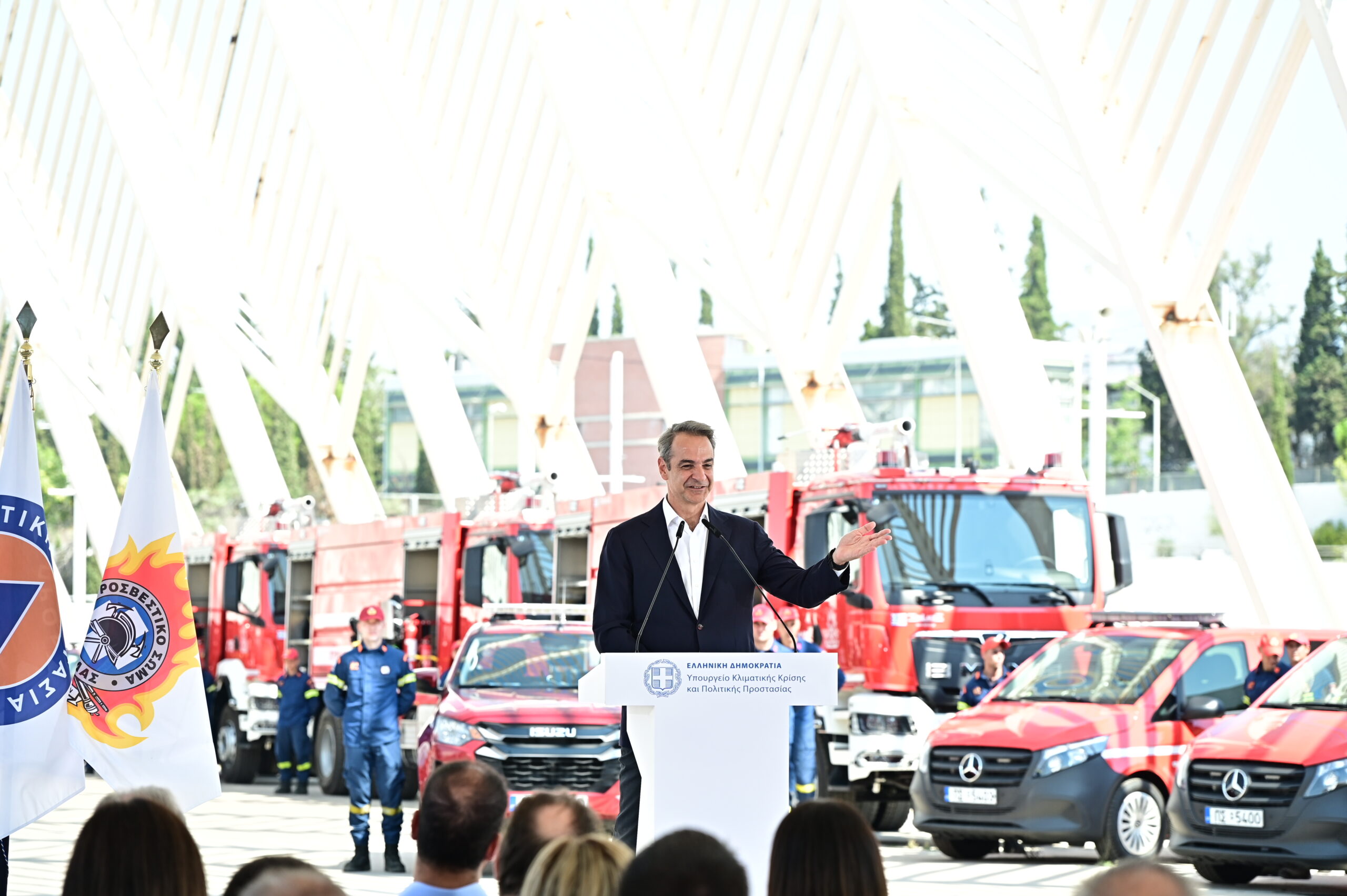 Μητσοτάκης στην τελετή παράδοσης 164 νέων οχημάτων στην Πυροσβεστική: Η πατρίδα προοδεύει και κάνει βήματα μπροστά