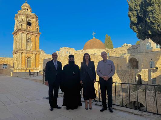 Στη συνέχεια η Υπουργός, Σοφία Ζαχαράκη, επισκέφτηκε και ξεναγήθηκε στην Ιερά Μονή Τιμίου Σταυρού στα Ιεροσόλυμα.