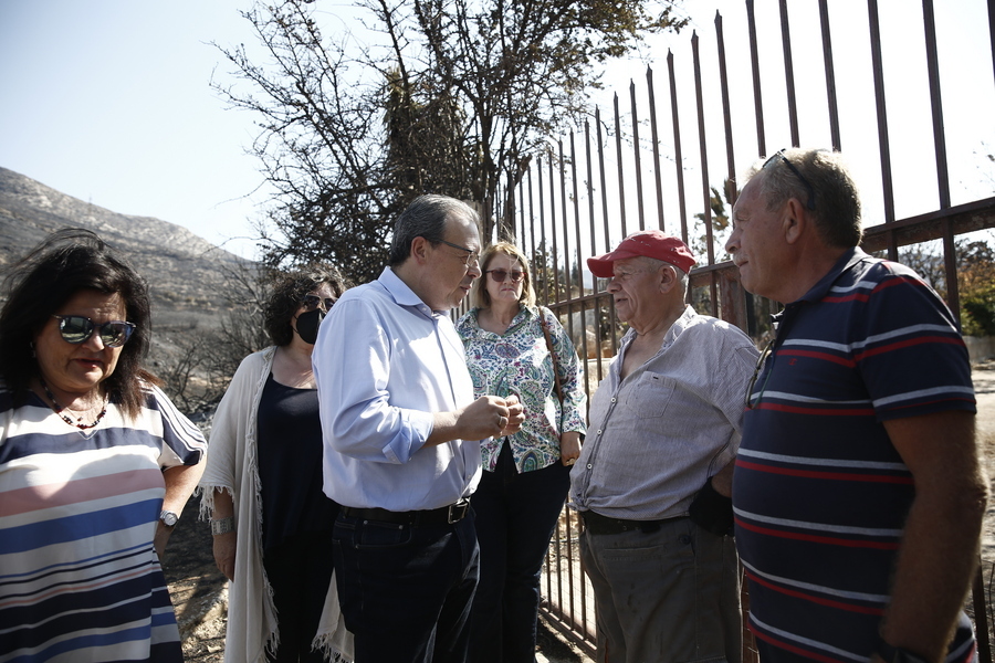 «Βρεθήκαμε σήμερα εδώ για να δούμε το αποτύπωμα της προχθεσινής πυρκαγιάς, συναντηθήκαμε με τον δήμαρχο και κάναμε μια πρώτη συζήτηση και για το μέγεθος του προβλήματος, της ζημιάς δηλαδή που έχει επέλθει, αλλά κυρίως πλέον για το σημαντικό έργο της αποτύπωσης, της αποκατάστασης και της αποζημίωσης.