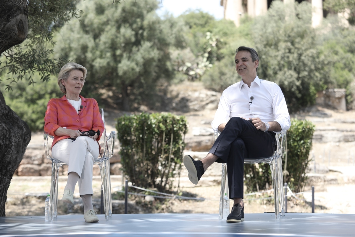 Οι υψηλοί προσκεκλημένοι, η Ούρσουλα Γκέρτρουντ φον ντερ Λάιεν και ο σύζυγός της Γερμανός γιατρός, Χάικο φον ντερ Λάιεν, απολαμβάνουν την Κρητική φιλοξενία και διαμένουν στη γνωστή βίλα Μητσοτάκη στο Ακρωτήρι.