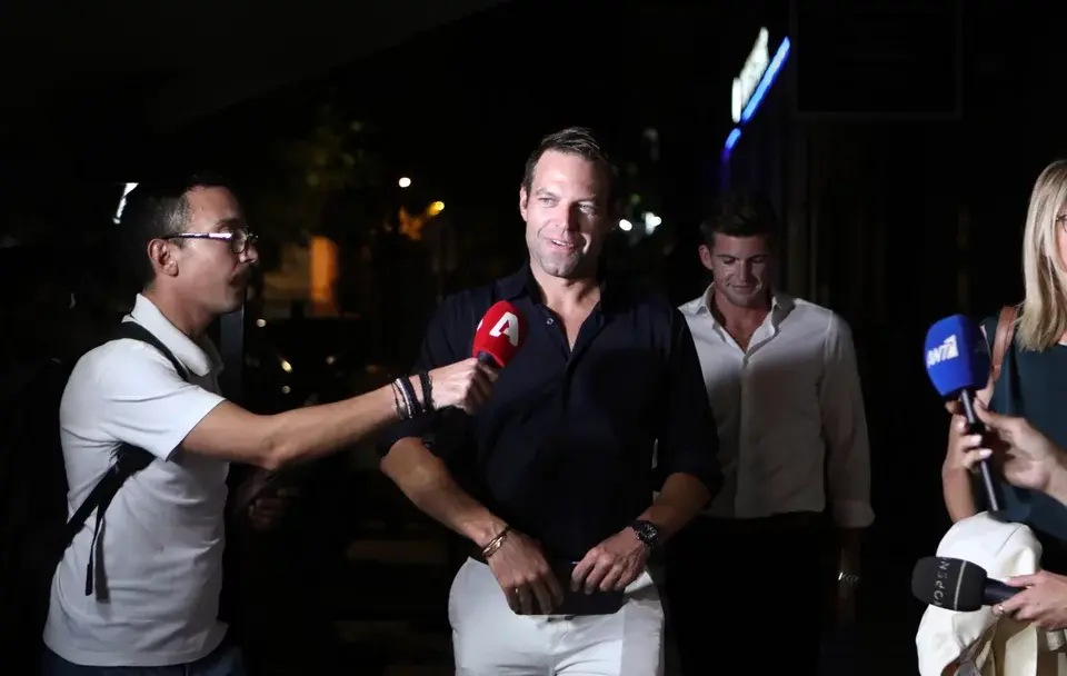 Ο υποψήφιος για την προεδρία του ΣΥΡΙΖΑ, έφτασε στα γραφεία μαζί με τον σύντροφό του, Τάιλερ, λίγο μετά τις 20:30.