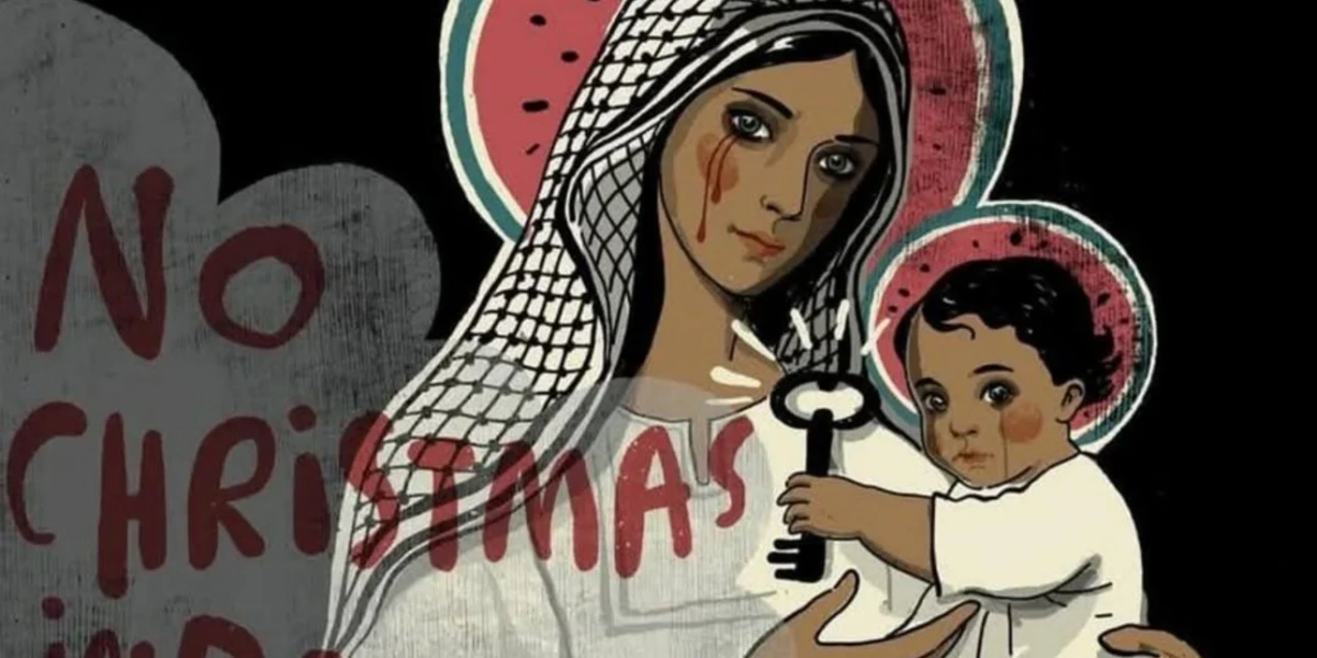 Στην εν λόγω εικόνα η Παρθένος έχει αντικατασταθεί από Παλαιστίνια η οποία κρατάει στην αγκαλιά της ένα παιδί με ακρωτηριασμένο πόδι ενώ με κόκκινα γράμματα αναφέρεται «No Christmas in Bethleem», μια σαφής αναφορά στον πόλεμο Παλαιστινίων και Ισραηλινών.