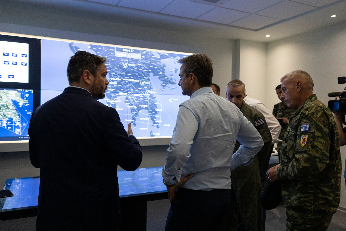 Στη συνέχεια ο Κυριάκος Μητσοτάκης ξεναγήθηκε στις εγκαταστάσεις της μονάδας, όπου είχε την ευκαιρία να ενημερωθεί για τις δυνατότητες των εξομοιωτών υψηλής ευκρίνειας και μεγάλου όγκου δεδομένων, αλλά και για τα συστήματα αναλυτικής παρακολούθησης πτήσεων. Παράλληλα, συνομίλησε με τους Ισραηλινούς ειδικούς που υποστηρίζουν τους Έλληνες εκπαιδευτές για την αναβάθμιση των εκπαιδευτικών δυνατοτήτων της μονάδας.