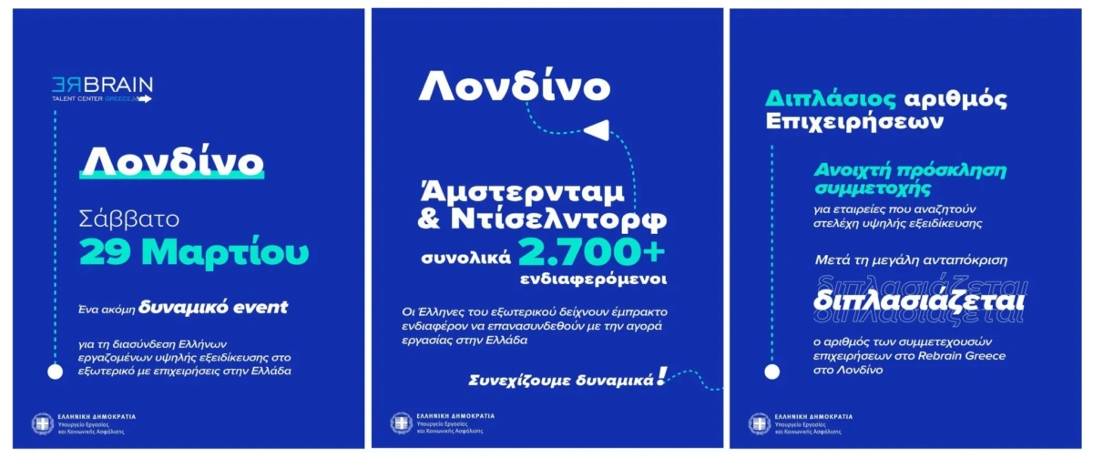 Η σημαντική επιτυχία που σημείωσαν οι εκδηλώσεις για την προσέλκυση και επαναπατρισμό Ελλήνων του εξωτερικού στο Άμστερνταμ τον Νοέμβριο του 2024, καθώς και η Ημέρα Καριέρας της ΔΥΠΑ στο Ντίσελντορφ τον Δεκέμβριο του 2024, με συμμετοχή περισσότερων από 2.700 ενδιαφερόμενων, οδήγησε το Υπουργείο στην απόφαση για διπλασιασμό των συμμετεχουσών εταιρειών, σε σχέση με την τελευταία εκδήλωση «REBRAIN GREECE». Οι συμμετέχουσες επιχειρήσεις θα έχουν την ευκαιρία να συγκεντρώσουν βιογραφικά μεγάλου αριθμού υποψηφίων, να πραγματοποιήσουν συνεντεύξεις για την κάλυψη των θέσεων εργασίας υψηλής εξειδίκευσης που διαθέτουν και να αναδείξουν τις δυνατότητες επαγγελματικής εξέλιξης που παρέχουν.