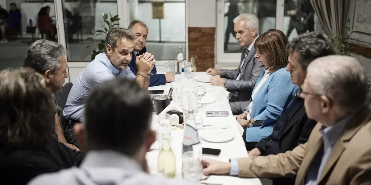 Ο κ. Μητσοτάκης χαιρέτισε κατοίκους και με την κ. Σακελλαροπούλου και τον δήμαρχο δείπνησαν σε ταβέρνα στην πλατεία που ήταν γεμάτη και από άλλες παρέες.