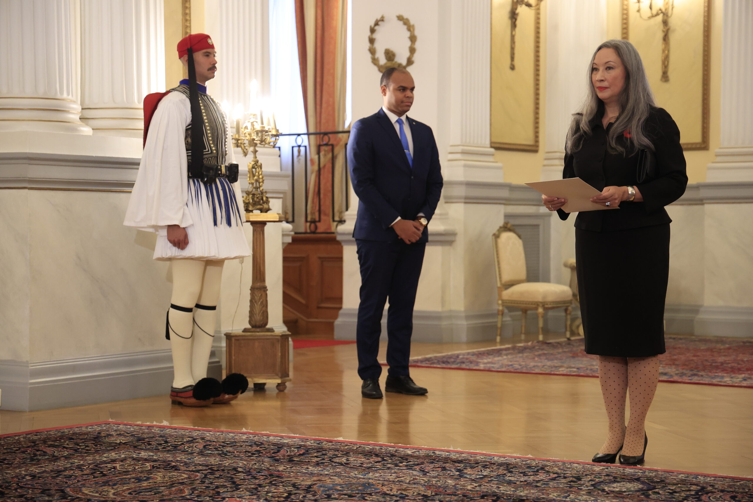 Είχε προηγηθεί η υποβολή διαπιστευτηρίων από τις νέες πρέσβεις του Βασιλείου της Νορβηγίας, Χάρριετ Μπεργκ και του Καναδά Σόνια Θίσσεν. Η Χάρριετ Μπεργκ διετέλεσε, μεταξύ άλλων, Διευθύντρια Ανθρωπίνων Δικαιωμάτων, Δημοκρατίας και Ισότητας των Φύλων στο υπουργείο, στο Όσλο, αλλά και Γενική Πρόξενος στη Νέα Υόρκη, ενώ έχει υπηρετήσει ως Αναπληρώτρια Υπουργός Εμπορίου και Βιομηχανίας την περίοδο 1997-2000. Η ίδια έχει εργαστεί επί χρόνια και στον ιδιωτικό τομέα, ενώ είναι κάτοχος μεταπτυχιακού από το Πανεπιστήμιο Columbia. Μάλιστα, έσπευσε με ένα βίντεο στα κοινωνικά δίκτυα να απευθυνθεί προς τις Ελληνίδες και τους Έλληνες με την ευκαιρία ανάληψης των καθηκόντων της.