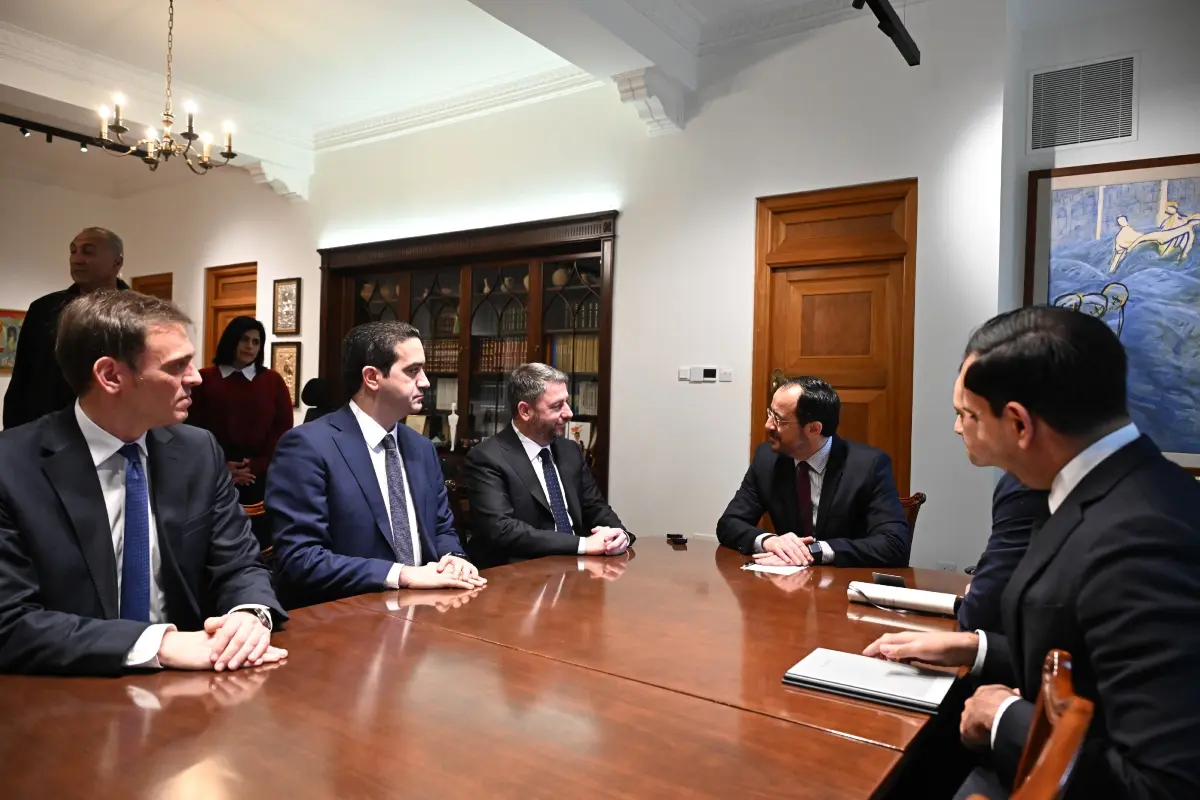 «Η σχέση μας είναι κάποια χρόνια πίσω. Η παρουσία σας σήμερα εδώ στην Κύπρο, ειδικά μετά τα πρόσφατα γεγονότα, είναι ιδιαίτερης σημασίας για εμάς. Επιβεβαιώνει τους στενούς αδελφικούς δεσμούς», ανέφερε ο κ. Χριστοδουλίδης υποδεχόμενος τον πρόεδρο του ΠΑΣΟΚ. Ο Πρόεδρος της Κυπριακής Δημοκρατίας εξέφρασε την ελπίδα κάποιες διεθνείς πρωτοβουλίες που φαίνεται να αναπτύσσονται, να οδηγήσουν σε ένα θετικό αποτέλεσμα. «Ένα θετικό αποτέλεσμα που δεν είναι τίποτα άλλο από την αποκλιμάκωση, γιατί η συνέχιση αυτής της κατάστασης, αντιλαμβάνεστε ότι λειτουργεί αρνητικά για όλους μας, για την Ευρώπη στο σύνολό της, για την περιοχή. Είμαστε σε συνεχή επαφή με τους ηγέτες των χωρών της περιοχής, οι οποίοι και αυτοί επιθυμούν να επιτευχθεί αυτός ο στόχος της αποκλιμάκωσης. Κι ελπίζουμε να υπάρξουν θετικές εξελίξεις», είπε ο κ. Χριστοδουλίδης.